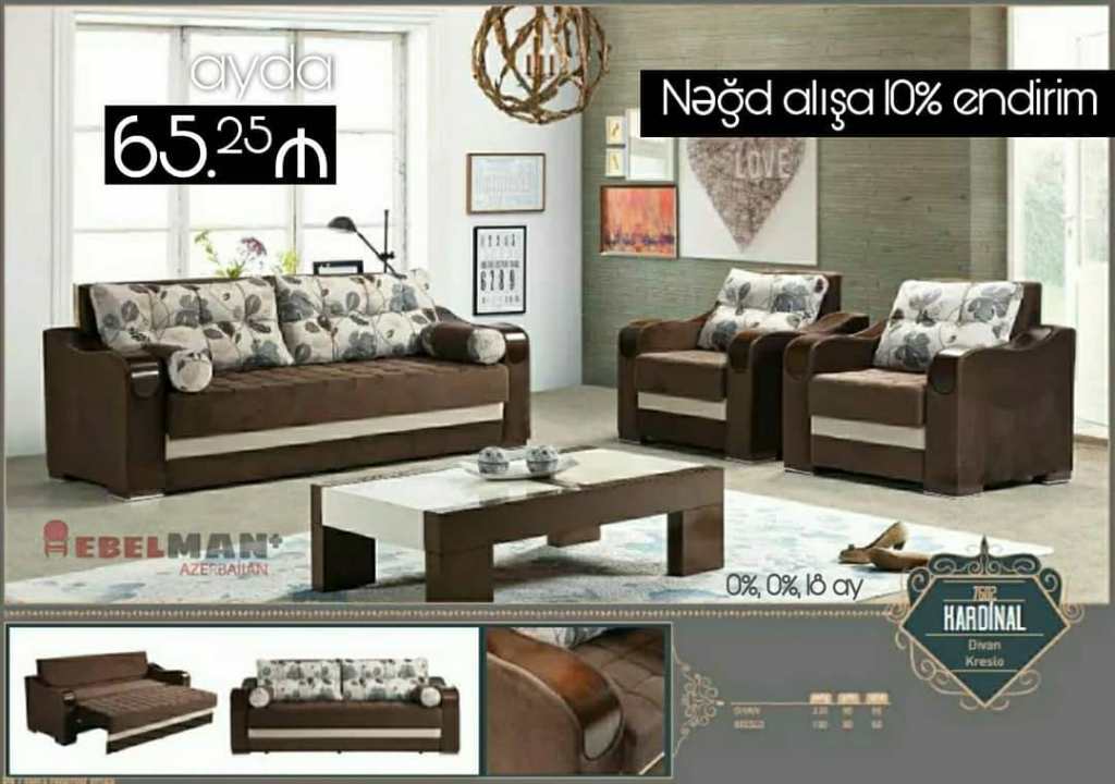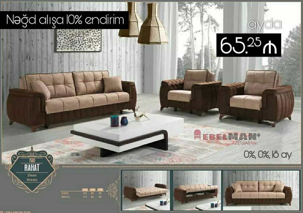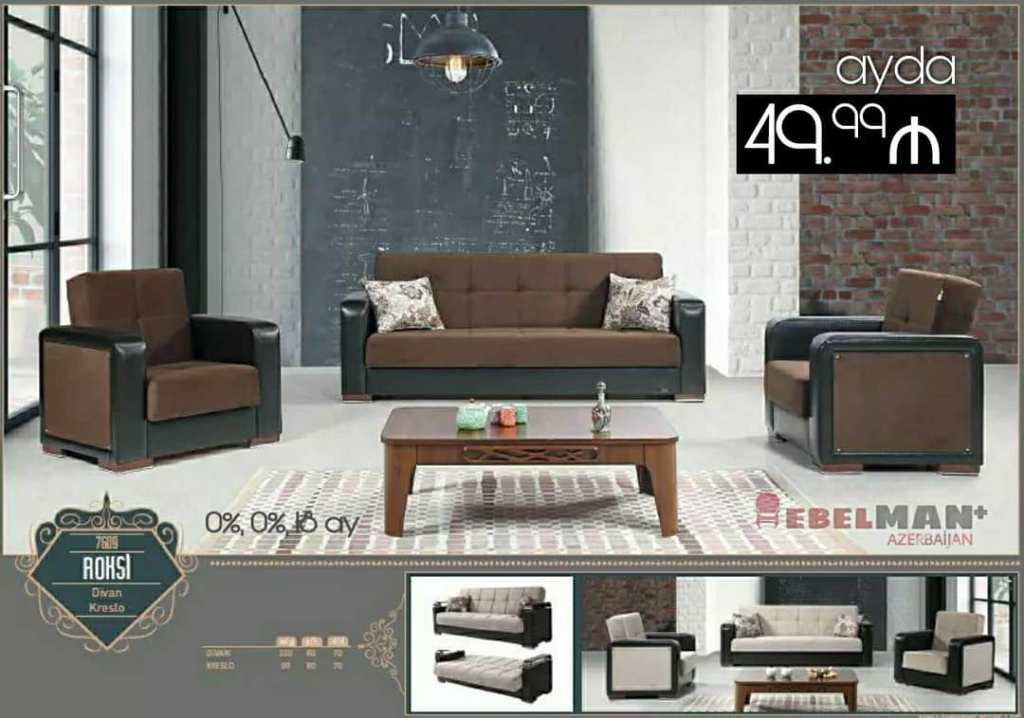 Yumşaq mebel dəstləri ilkin ödənişsiz, faizsiz şəxsiyyət vəsiqəsi ilə kreditlə.