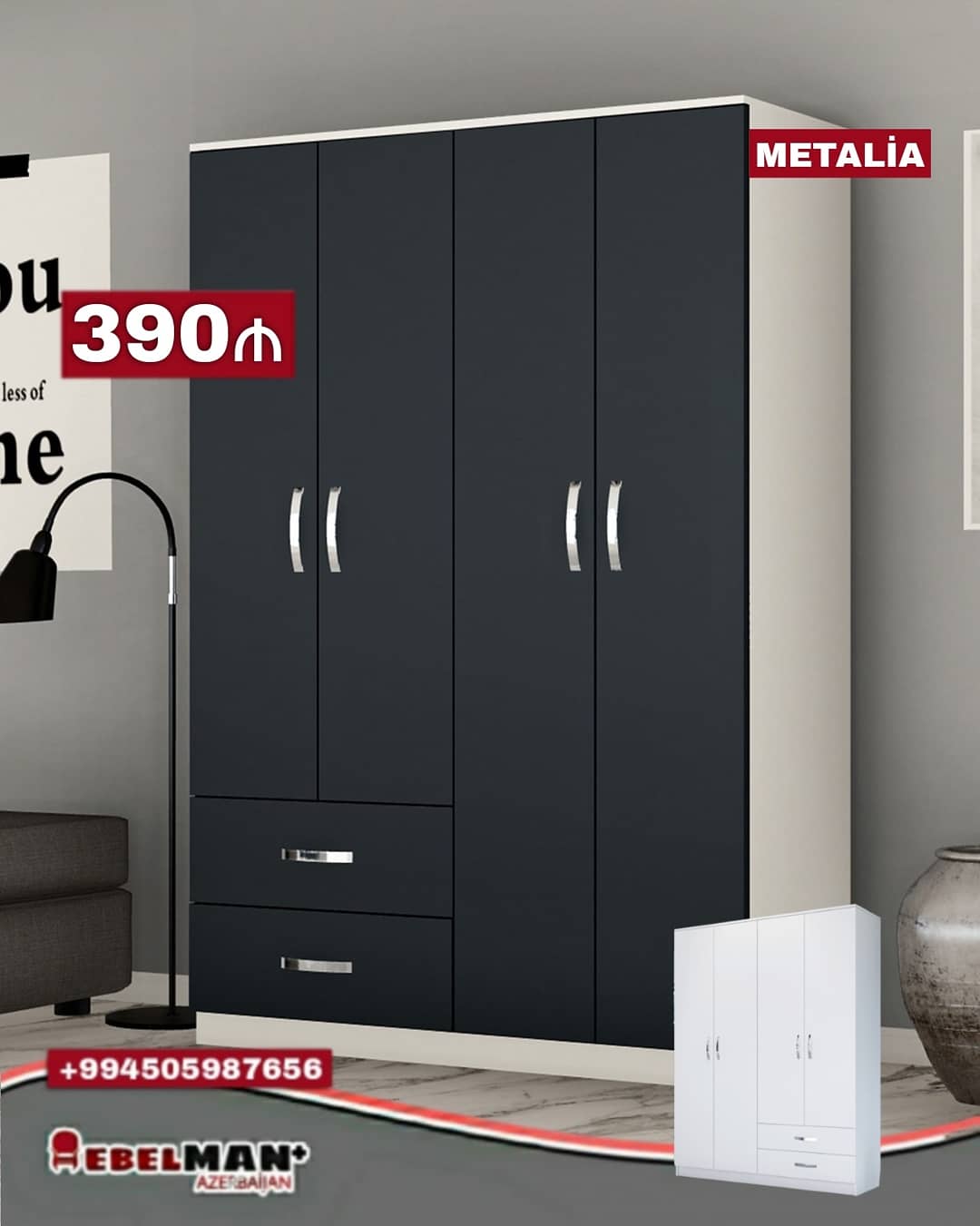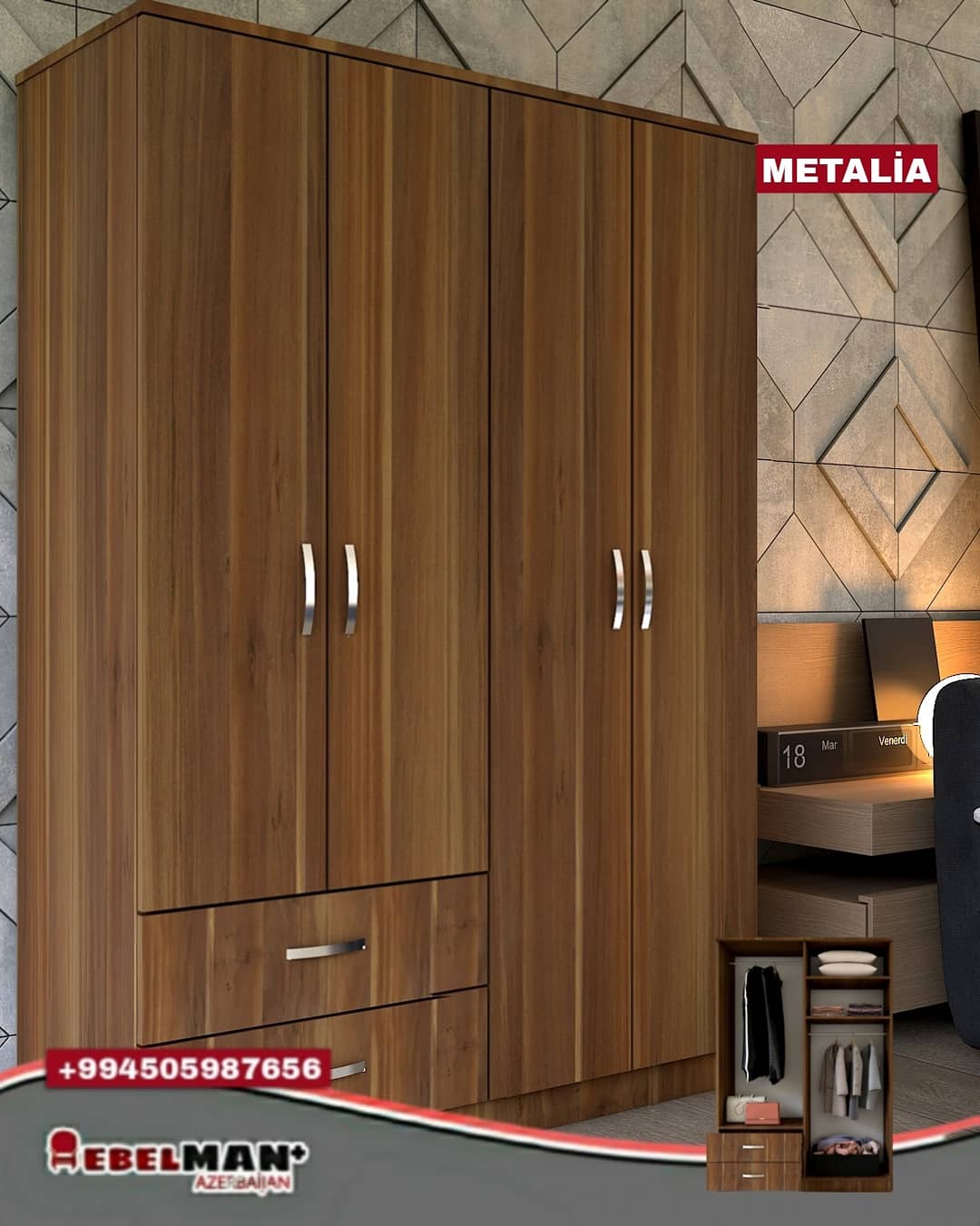 METALİA 4 qapılı dolab. İstər yataq otağı üçün istər dəhliz üçün ən uyğun seçim.