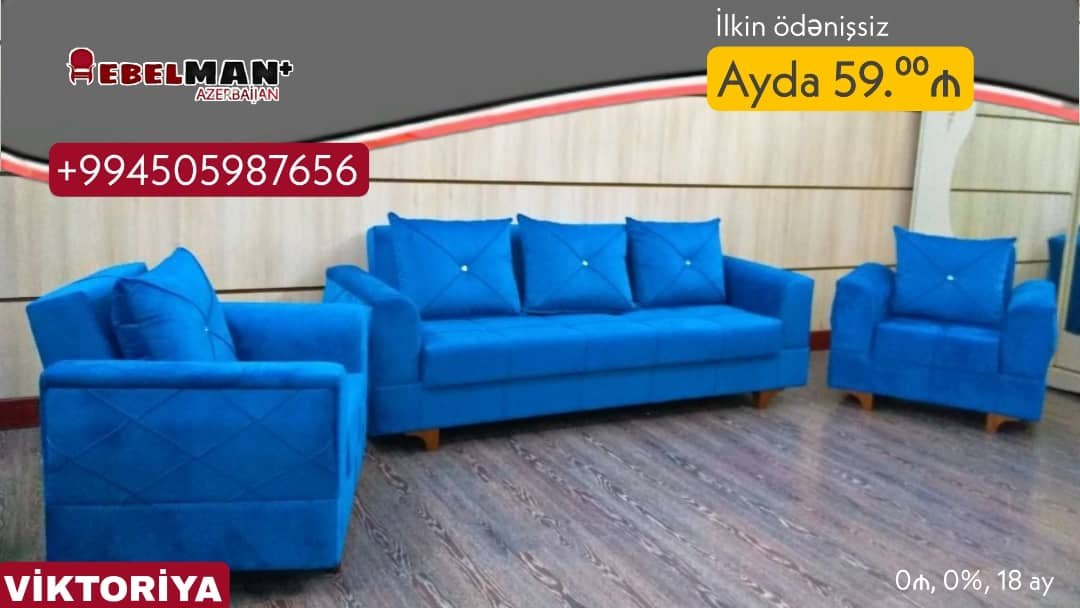 Yumşaq mebel dəstləri ilkin ödənişsiz, faizsiz şəxsiyyət vəsiqəsi ilə kreditlə.