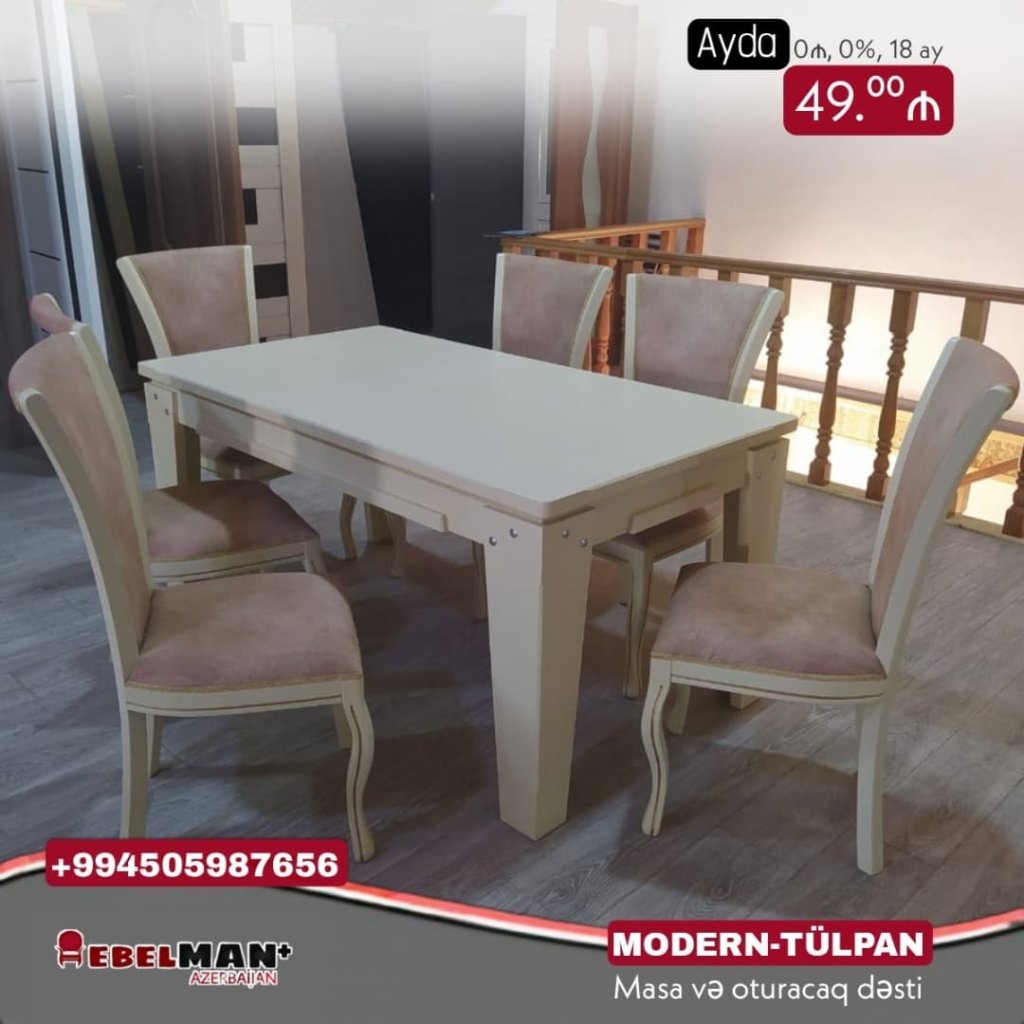 Masa və oturacaq dəsti MODERN-TÜLPAN ilkin ödənişsiz tək şəxsiyyət vəsiqəsi il kreditlə 💸Ayda cəmi 49₼.