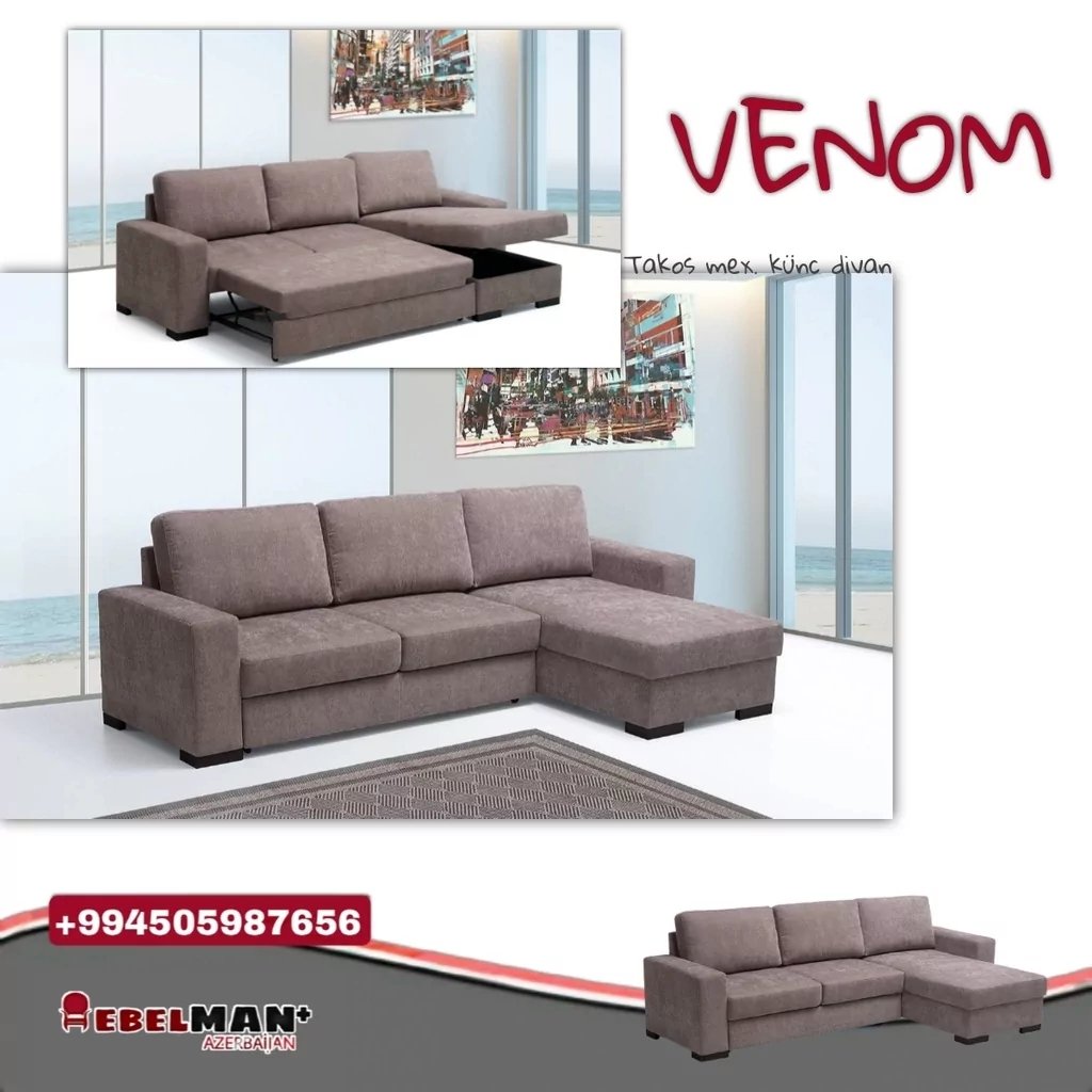 Salon üçün ən rahat mebel hansı ola bilər? Əlbəttə künc divan VENOM. Kompaktlığı və qalın oturacağı ilə fərqlənən bu mebelin başqa özəllikləri də var.