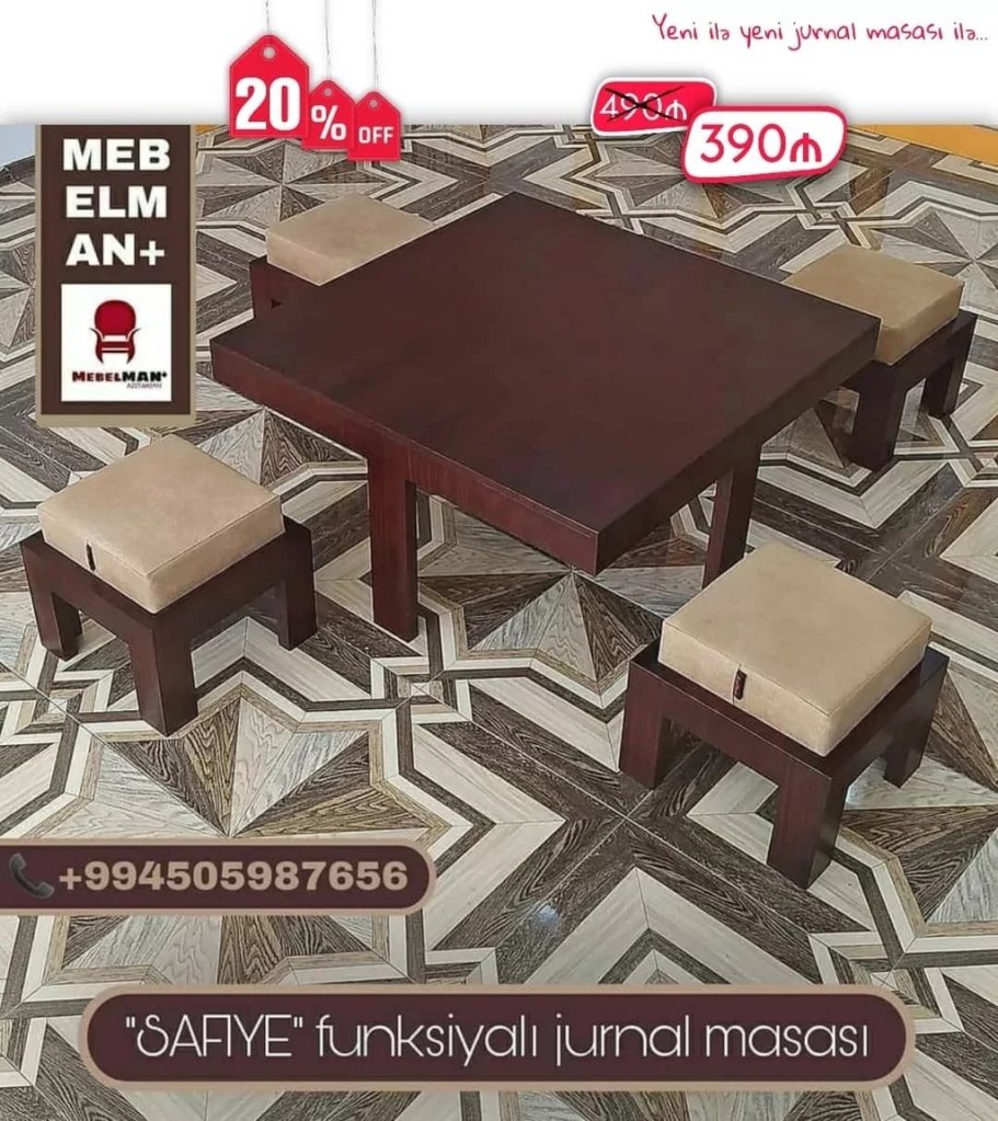 İstər jurnal masası kimi, istər yemək masası kimi istifadə edə bilərsiz.⤵️