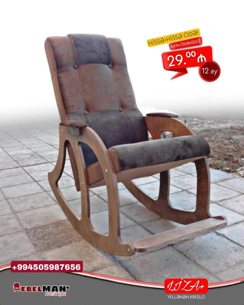Yellənən kreslo almaq indi daha asandır. Əvvəlcədən heçnə ödəmədən gəl apar, gələn aydan hissə-hissə ödəməyə başla. Yellənən kreslo (Kreslo-kaçalka) LİZA+. İlkin ödənişsiz kreditlə ayda cəmi 29₼.