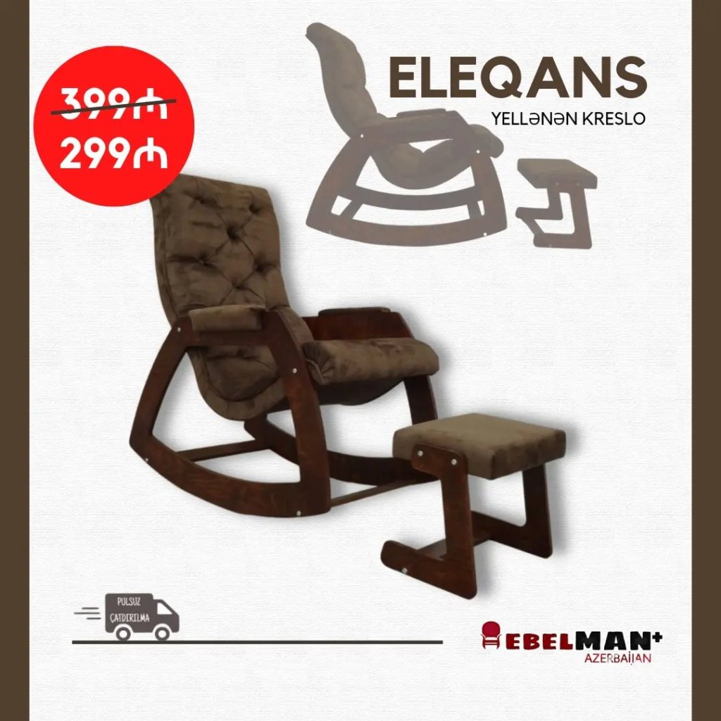 Möhtəşəm endirim gəlir! Bu fürsət bir də ələ keçməz. ELEQANS yellənən kreslo super endirimlə cəmi 299₼. Üstəlik Çatdırılma xidməti pulsuzdur. Elə indi sifariş edin: 0505987656(vatsap var) qapıya kimi çatdıraq.