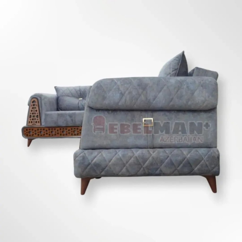 Füsünkar gözəllik xüsusi taxta dekorla daha üst pilləyə qalxır. İstehsalında möhkəm və qalın Rusiya istehsalı olan süngərdən istifadə olunub, eyni zamanda üzlük parçası Türkiyə istehsalıdır. Möhkəm karkasa malik olan bu künc divanı keyfiyyətinə Zəmanət verilən dayanıqlı mexanimlərlə təchiz olunub. Rahat açılıb bağlanır.