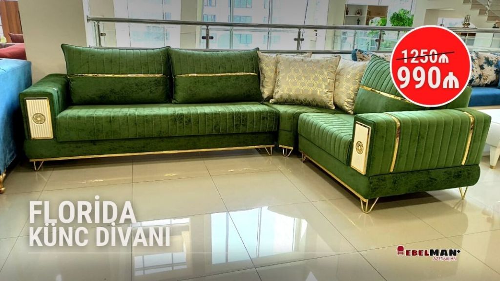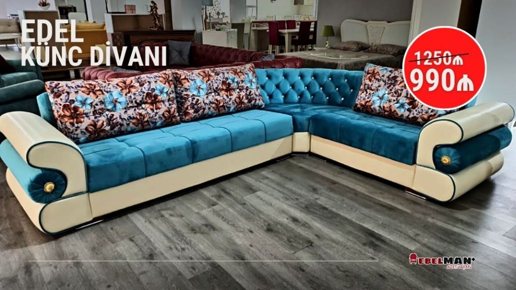 Əla fürsəti qaçırmayın! Yeni model künc divanlar 20% xüsusi endirimlə. Füsünkar gözəllik xüsusi dekorla daha üst pilləyə qalxır. İstehsalında möhkəm və qalın Rusiya istehsalı olan süngərdən istifadə olunub, eyni zamanda üzlük parçası Türkiyə istehsalıdır. Möhkəm karkasa malik olan bu künc divanı keyfiyyətinə Zəmanət verilən dayanıqlı mexanimlərlə təchiz olunub. Rahat açılıb bağlanır. Fabrik standartları ilə istehsal olunub.