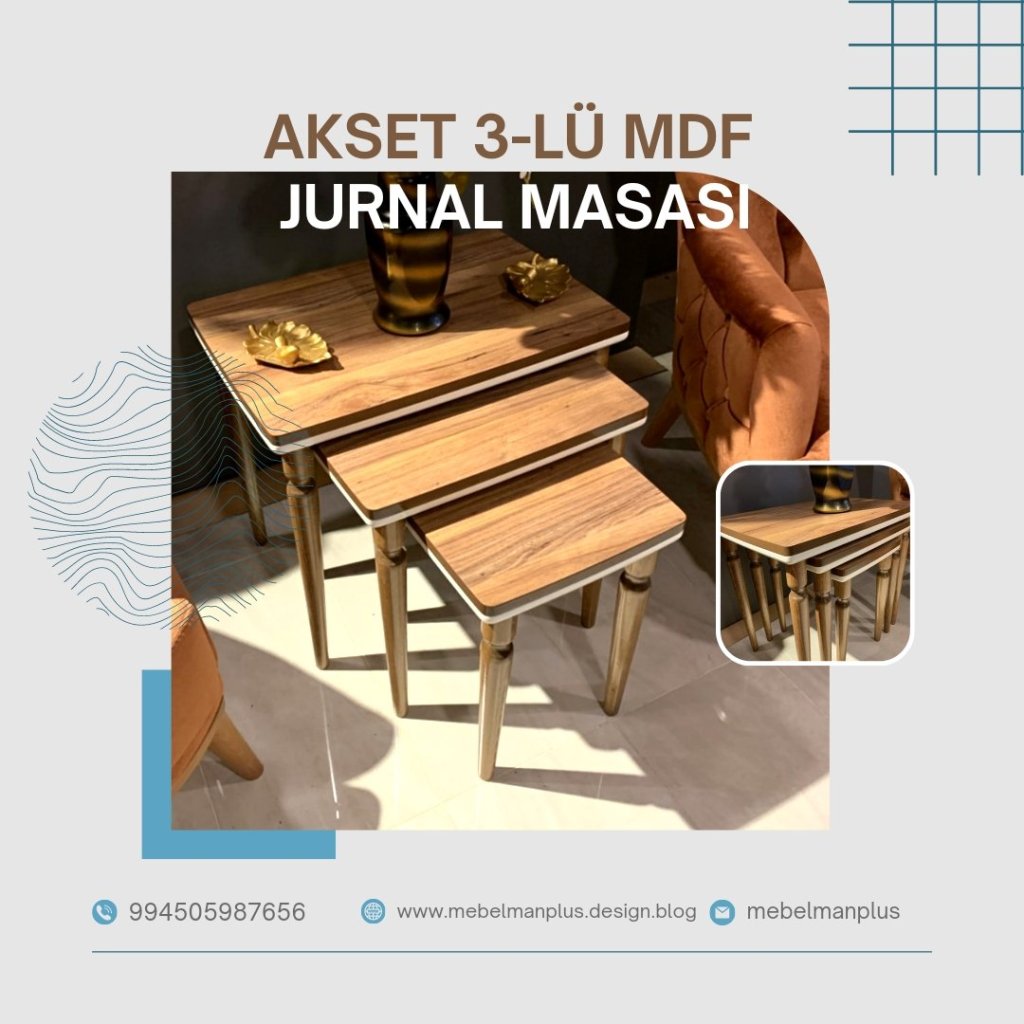AKSET 3-lü MDF jurnal masa. 4 fərqli rəngdə təqdim olunub. Bacarıqlı istehsalı ilə sizlərə keyfiyyətli məhsul təqdim edirik. Qiyməti keyfiyyətindən aşağı AKSET 3-lü jurnal masasına cəmi 249₼ ödəməklə sahib ola bilərsiniz.