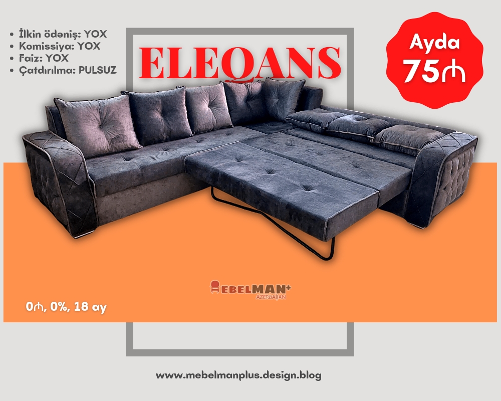 Əla fürsəti qaçırmayın! Yeni model künc divan ELEQANS ilkin ödənişsiz və faizsiz və komissiyasız 18 ayadək kreditlə qyda cəmi 75₼.