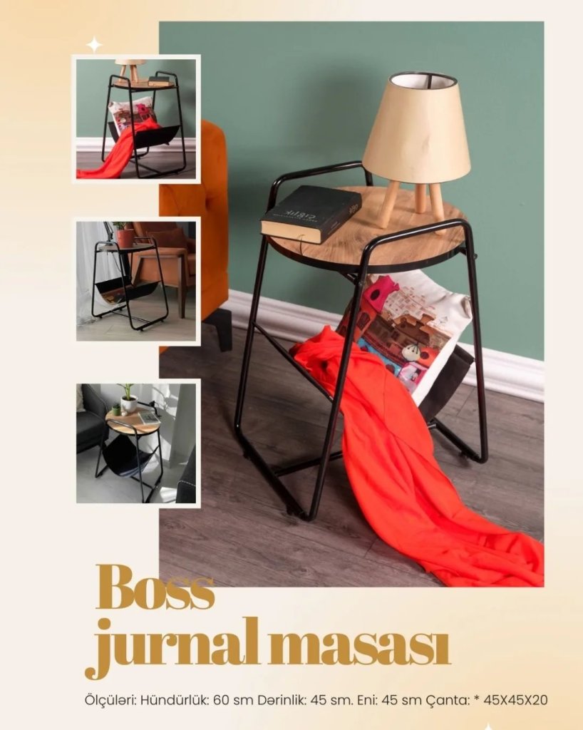 Sizə Türkiyə istehsalı olan BOSS metal ayaqlı möhtəşəm jurnal masasını təqdim edirik! Yumşaq mebellərinizin kənarında və ya önündə istifadə etməklə dekorasiya kimi istifadə edə, eyni zamanda çay içərkən komputer və ya planşetinizdə film izləyə bilərsiniz.