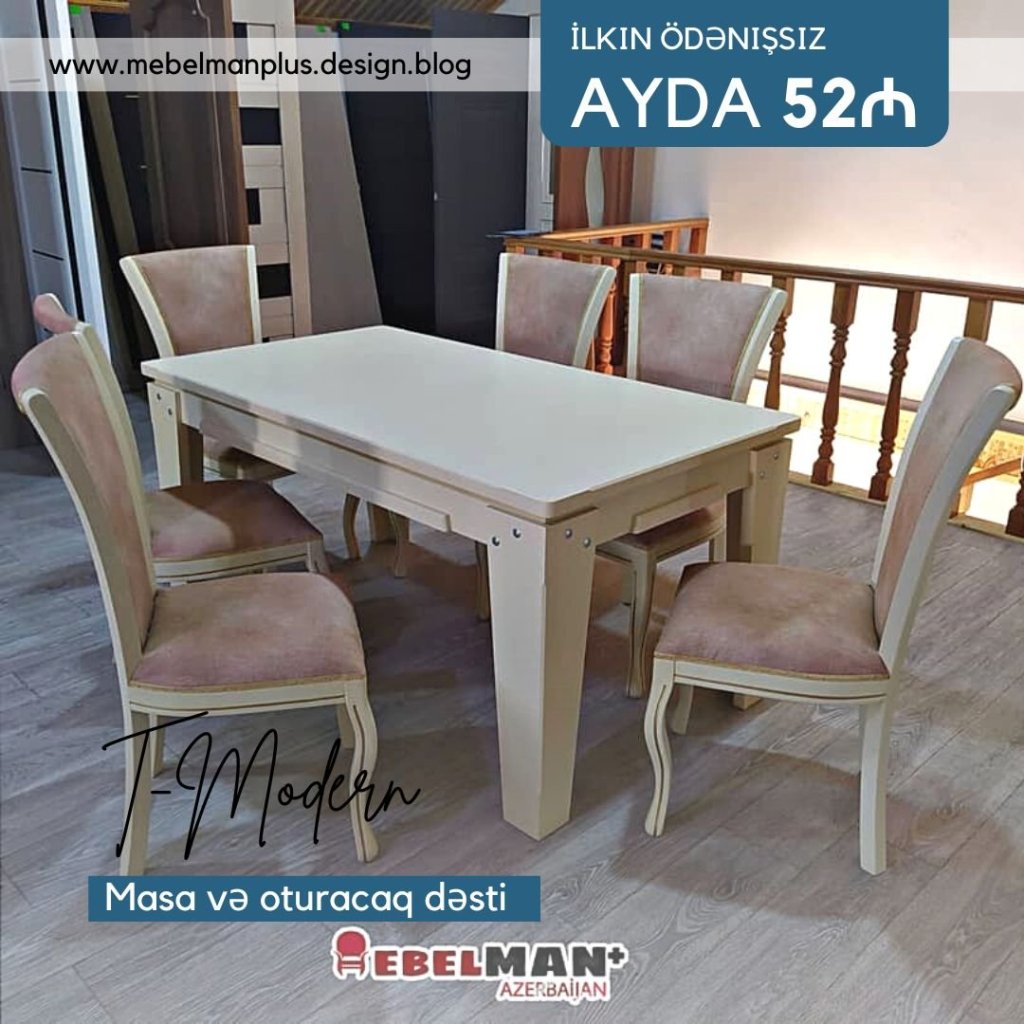 T-MODERN masa və oturacaq dəstləri ilkin ödənişsiz, faizsiz tək şəxsiyyət vəsiqəsi ilə kreditlə.