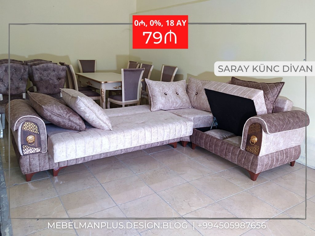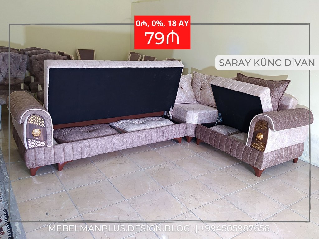 SARAY künc divan modeli ilkin ödənişsiz, faizsiz və komissiyasız 18 ayadək Kreditlə ayda cəmi 79₼.