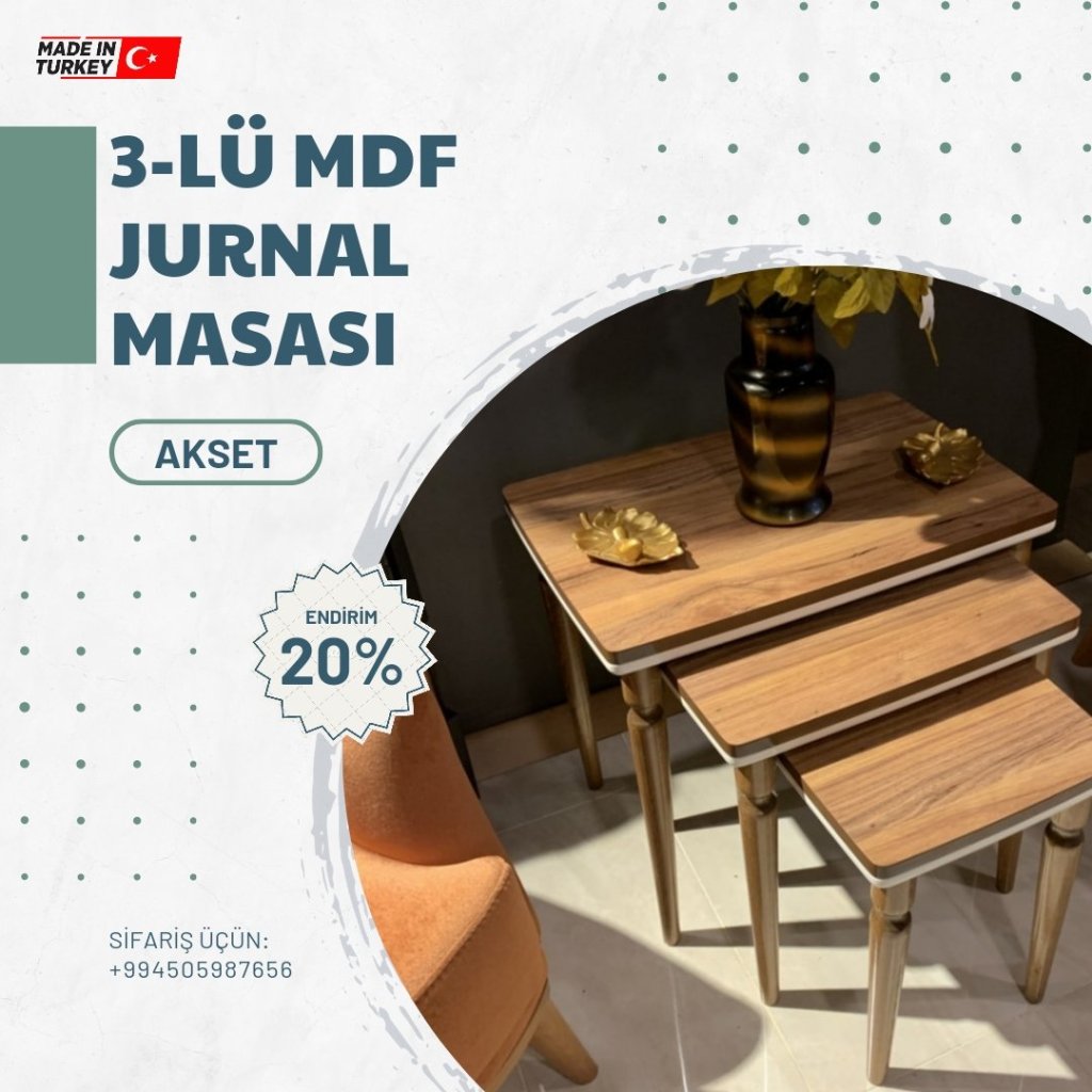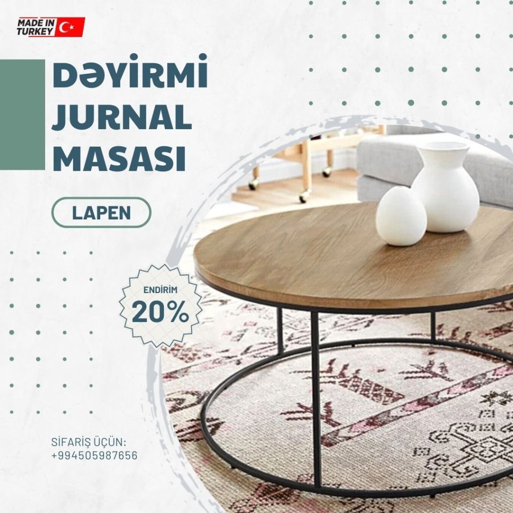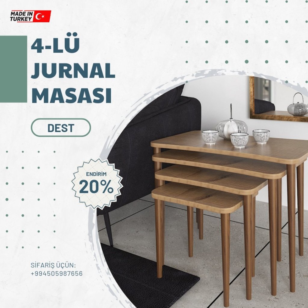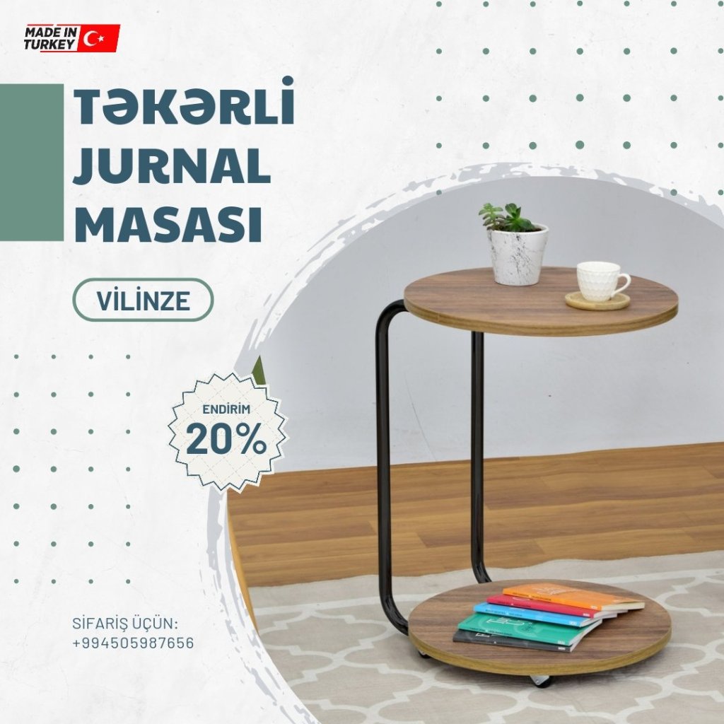Evinizə xüsusi rəng qatacaq dekorativ görünüşlü və səmərəli jurnal masaları sifarişlə və xüsusi endirimlə birbaşa Türkiyədən qapınıza çatdırılır. 20%-lik endirimlərdən yararlanın.