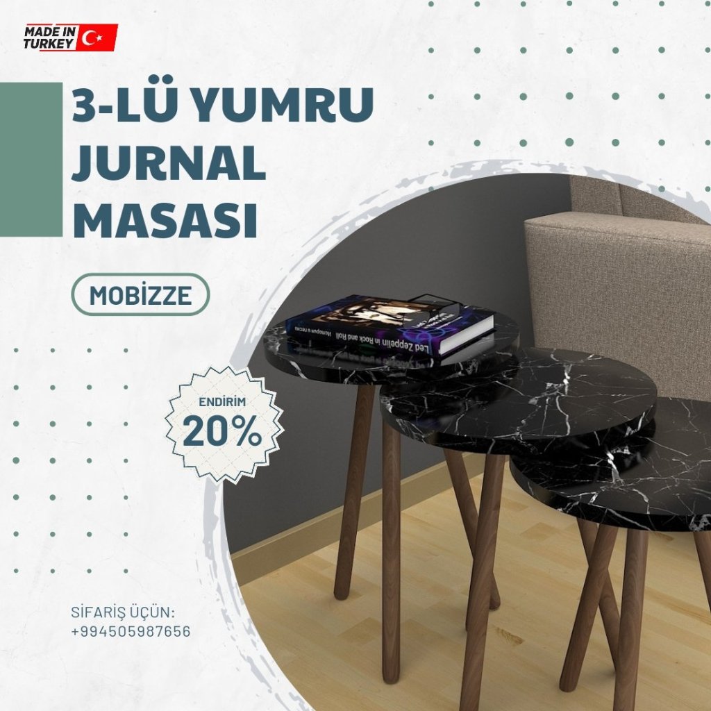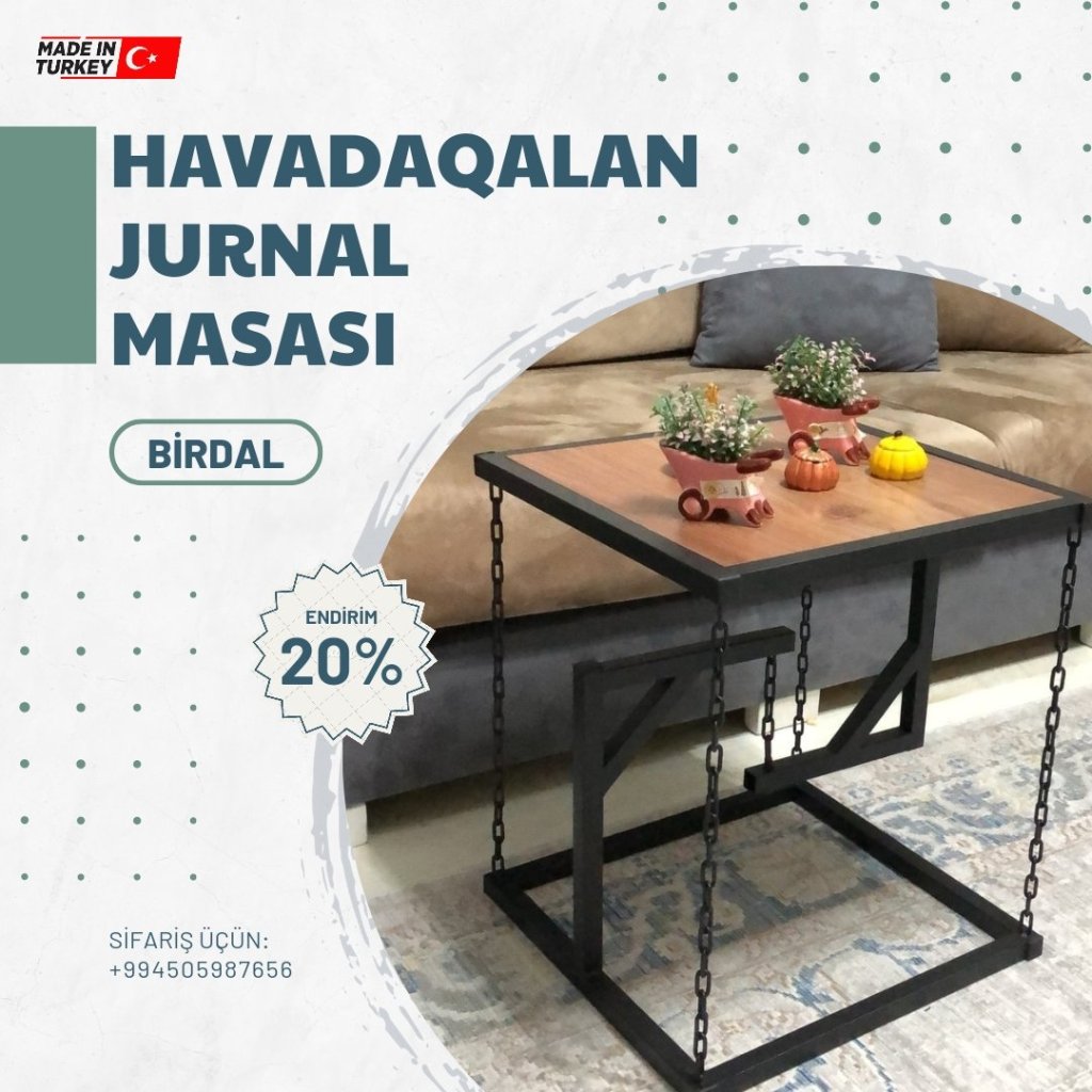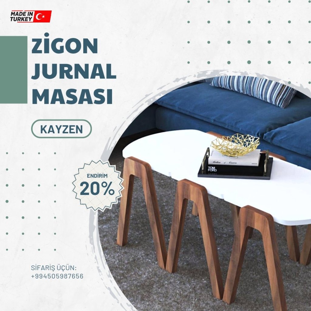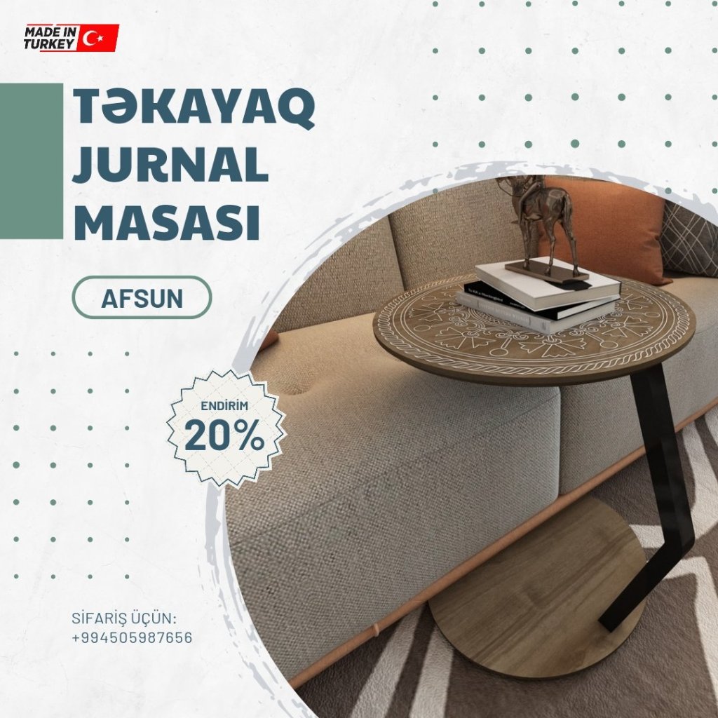 Evinizə xüsusi rəng qatacaq dekorativ görünüşlü və səmərəli jurnal masaları sifarişlə və xüsusi endirimlə birbaşa Türkiyədən qapınıza çatdırılır. 20%-lik endirimlərdən yararlanın.