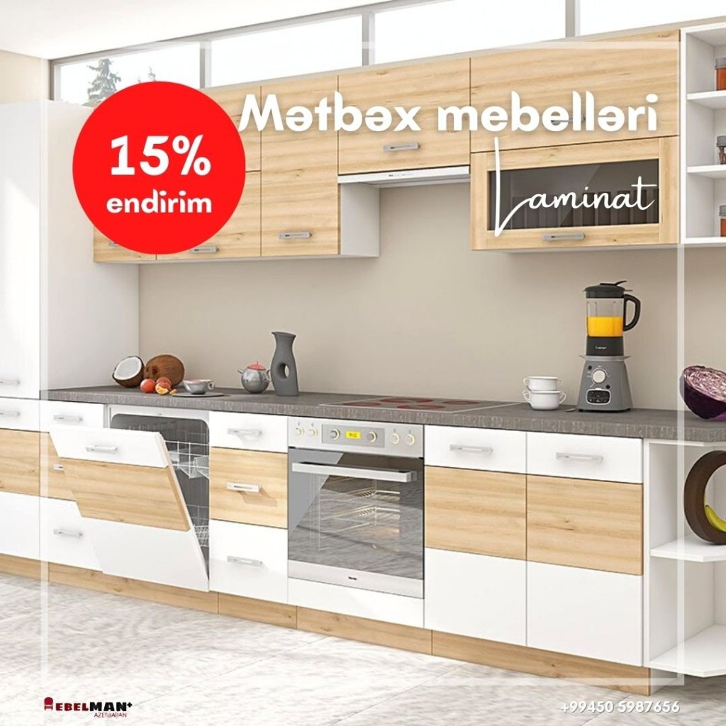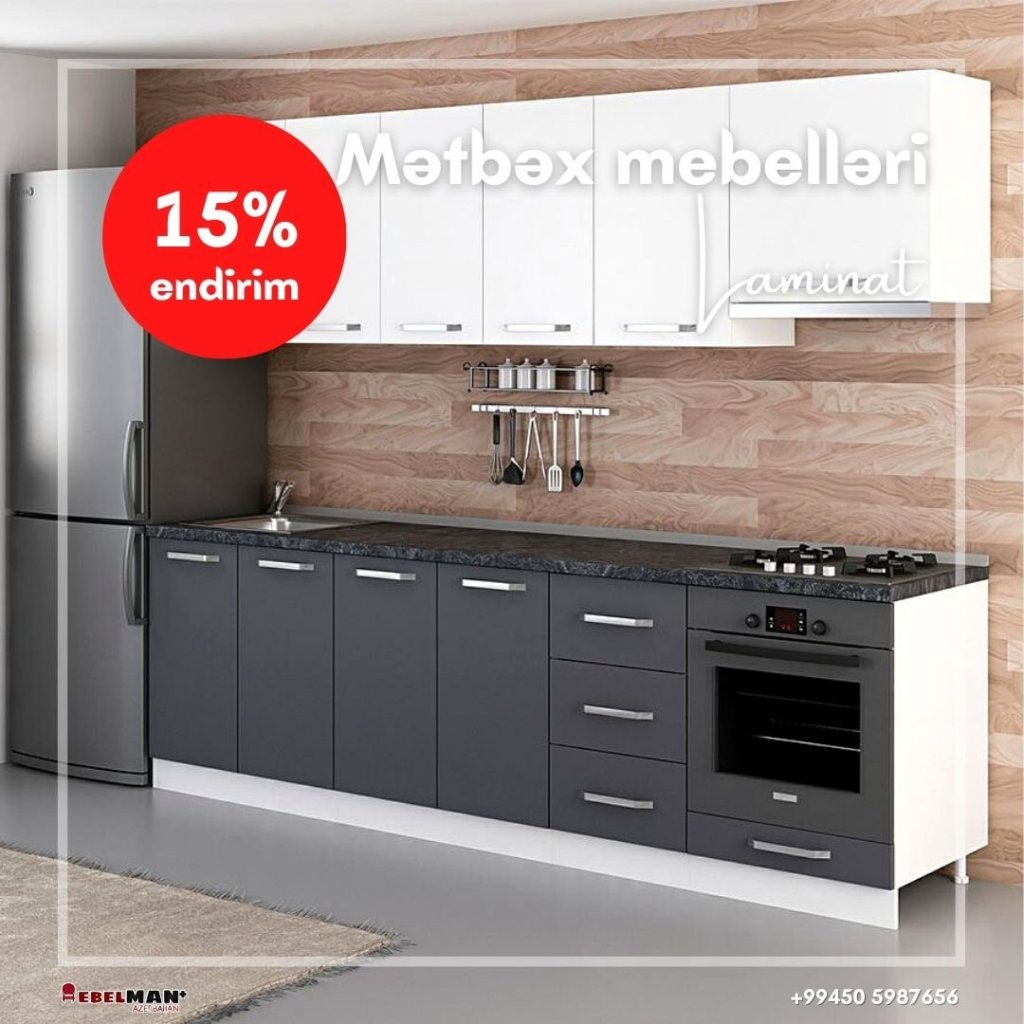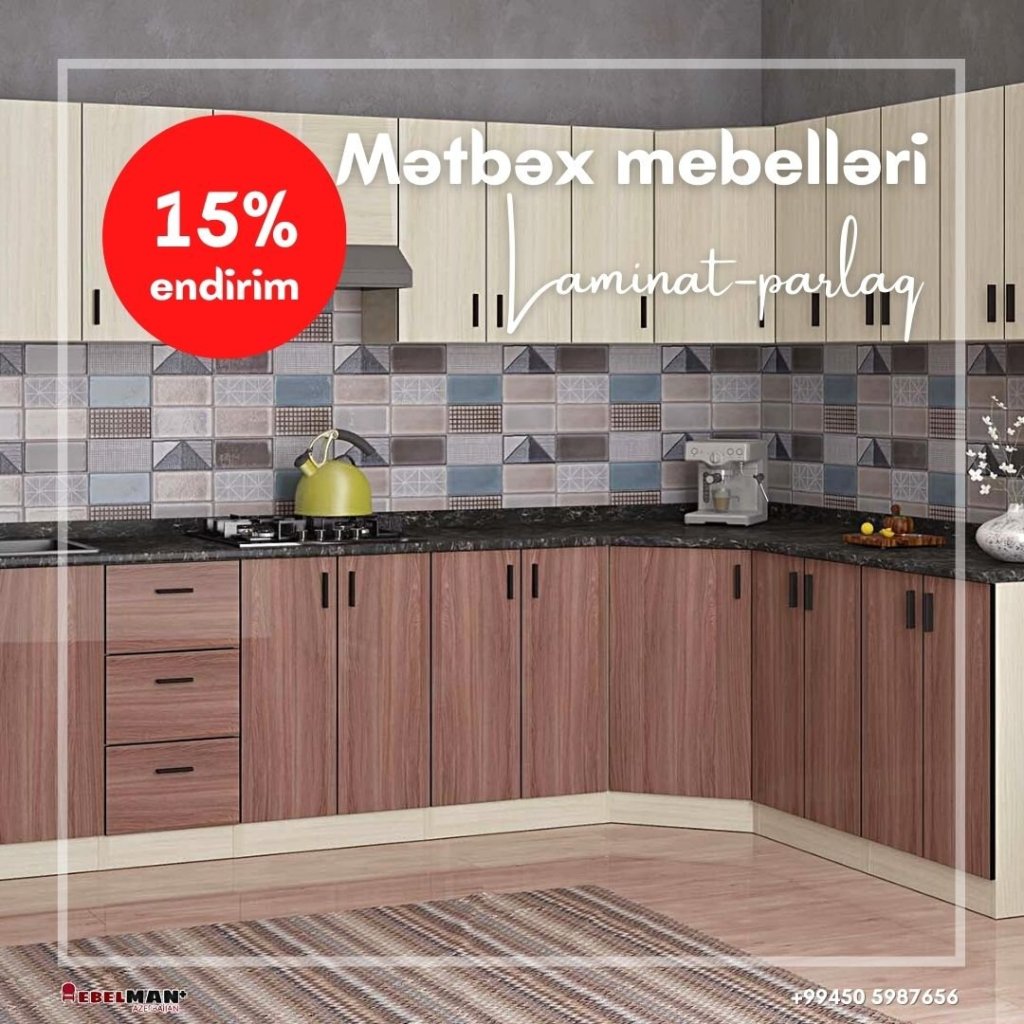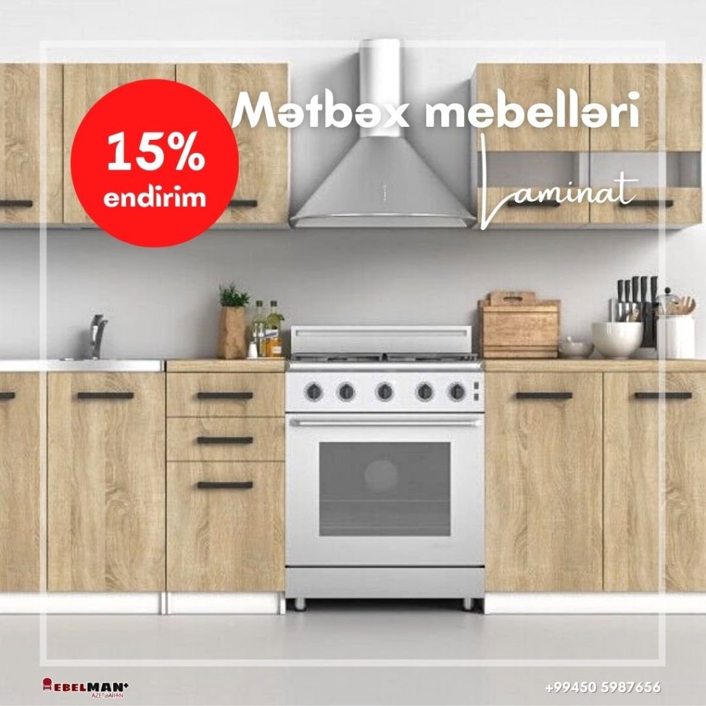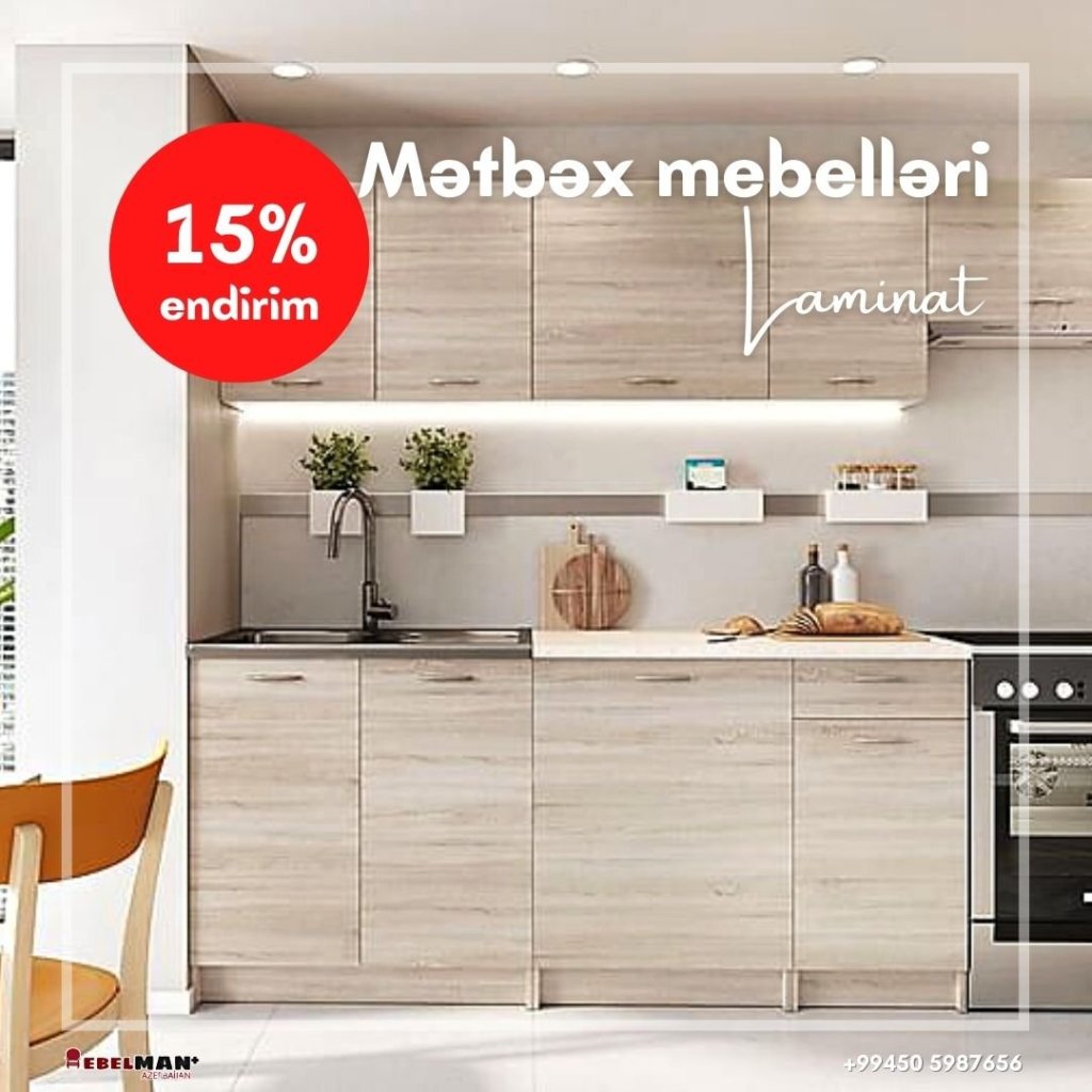 @mebelmanplus‘dan mətbəx mebellərinizə endirimli SUPER təklif!. İstənilən mətbəx mebeli dəstinin 15% xüsusi endirimlə sahib ola bilərsiniz. Sifarişlə istədiyiniz rəngdə və arzuladığınız dizaynda hazırlanır. İstehsalında möhkəm və dayanıqlı, tam original xammaldan istifadə olunan mətbəx mebelləri Rusiya isyehsalı laminat və Türkiyə istehsalı MDF materiallarından hazırlanır.