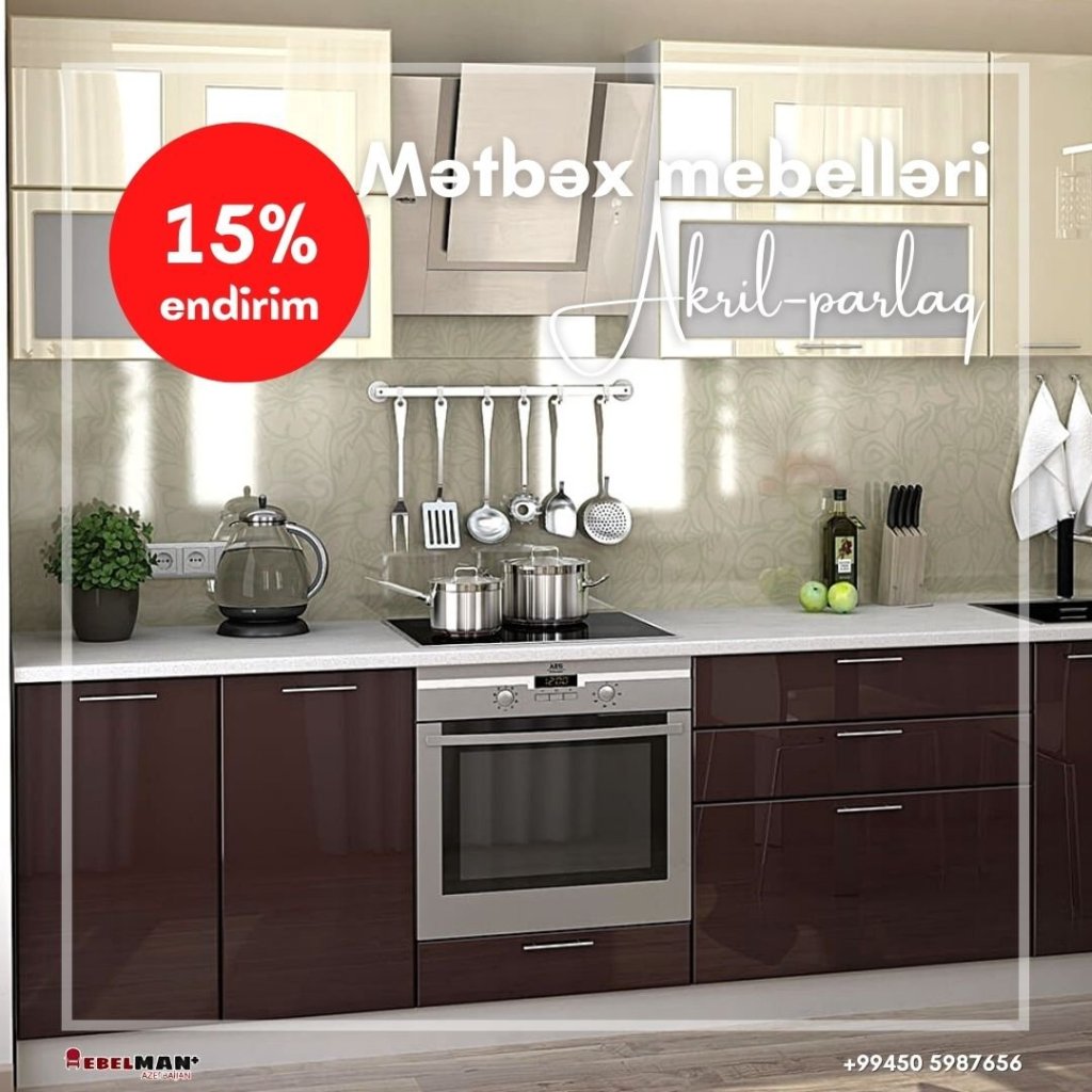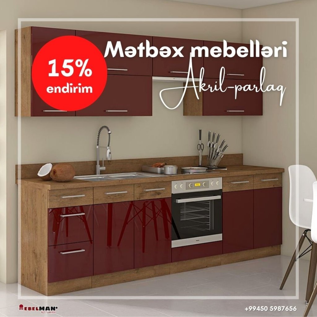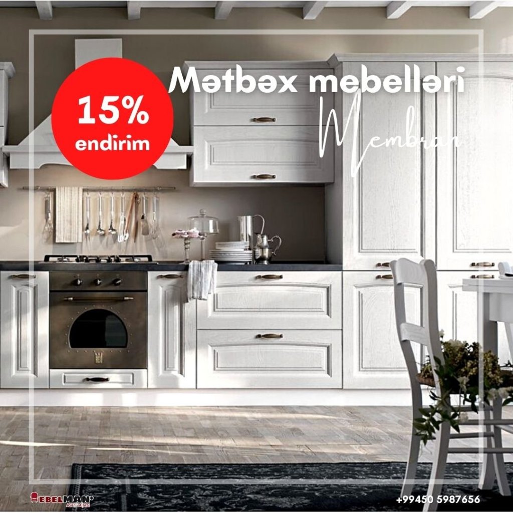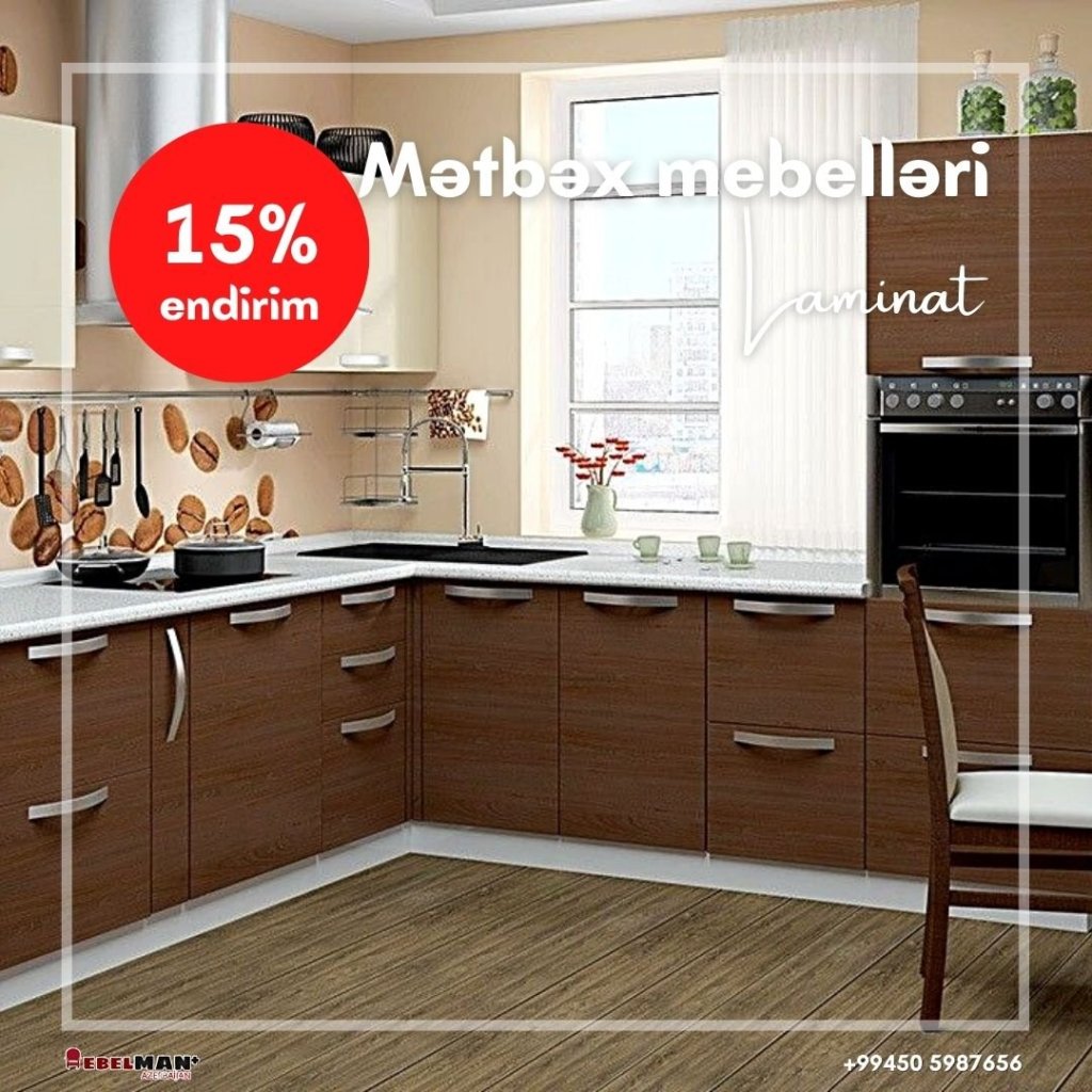 @mebelmanplus‘dan mətbəx mebellərinizə endirimli SUPER təklif!. İstənilən mətbəx mebeli dəstinin 15% xüsusi endirimlə sahib ola bilərsiniz. Sifarişlə istədiyiniz rəngdə və arzuladığınız dizaynda hazırlanır. İstehsalında möhkəm və dayanıqlı, tam original xammaldan istifadə olunan mətbəx mebelləri Rusiya isyehsalı laminat və Türkiyə istehsalı MDF materiallarından hazırlanır.