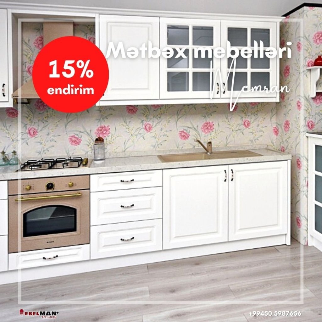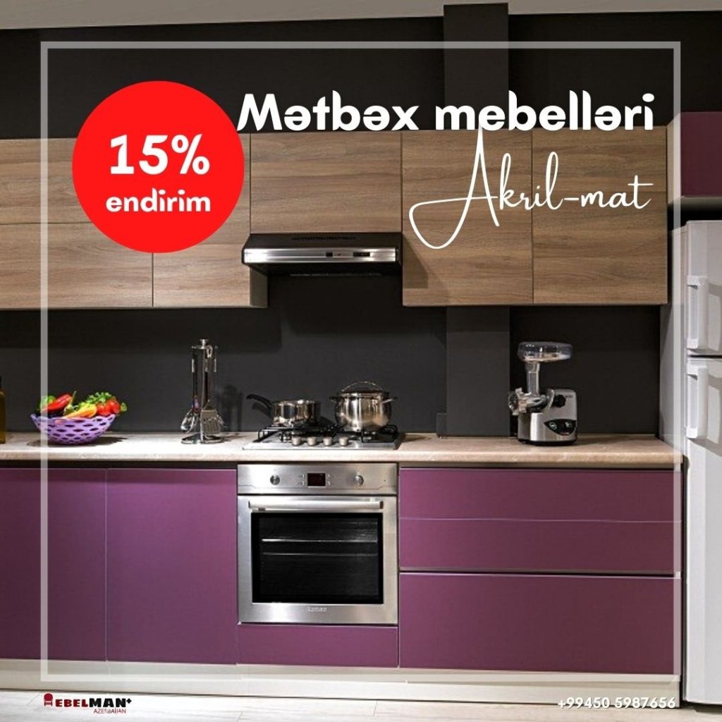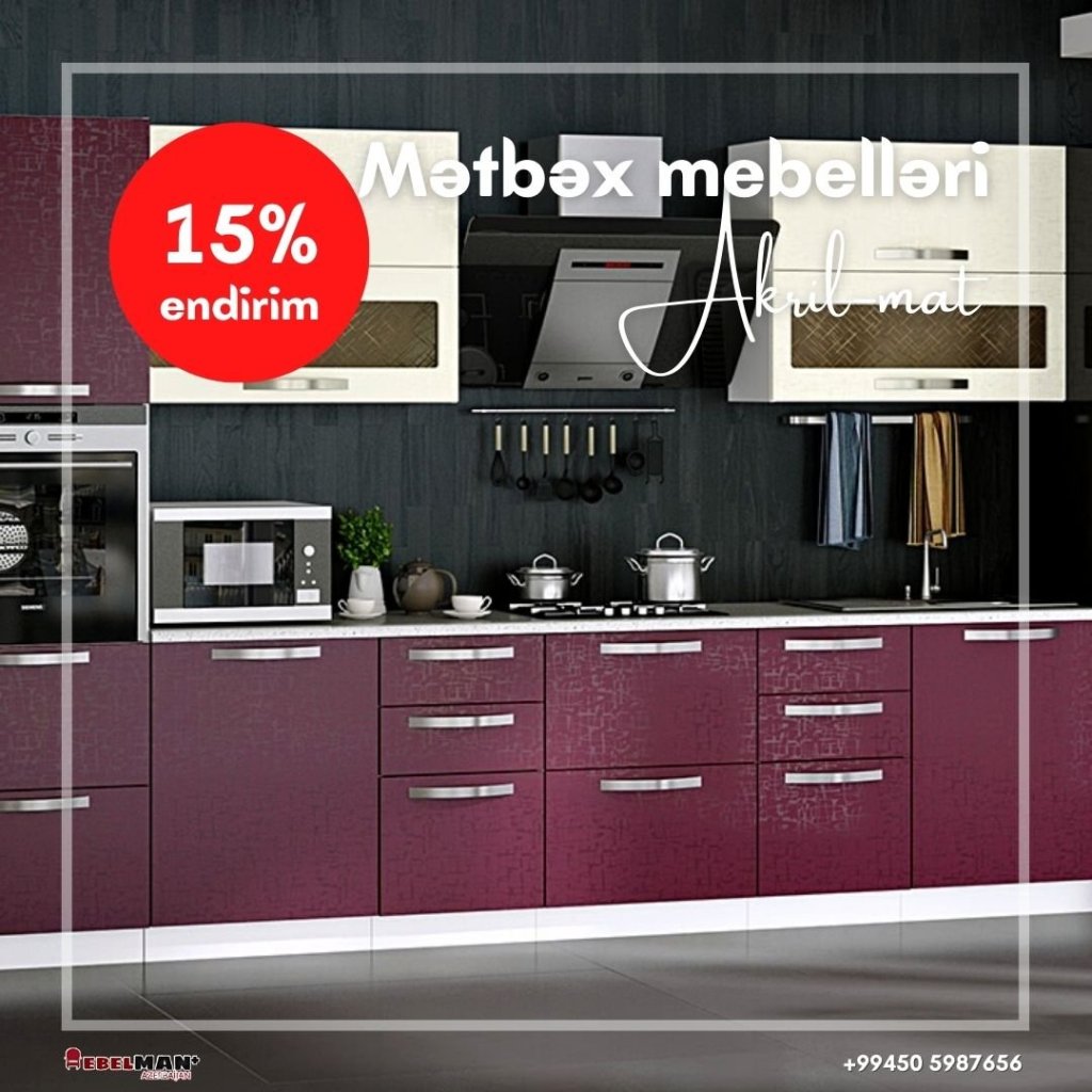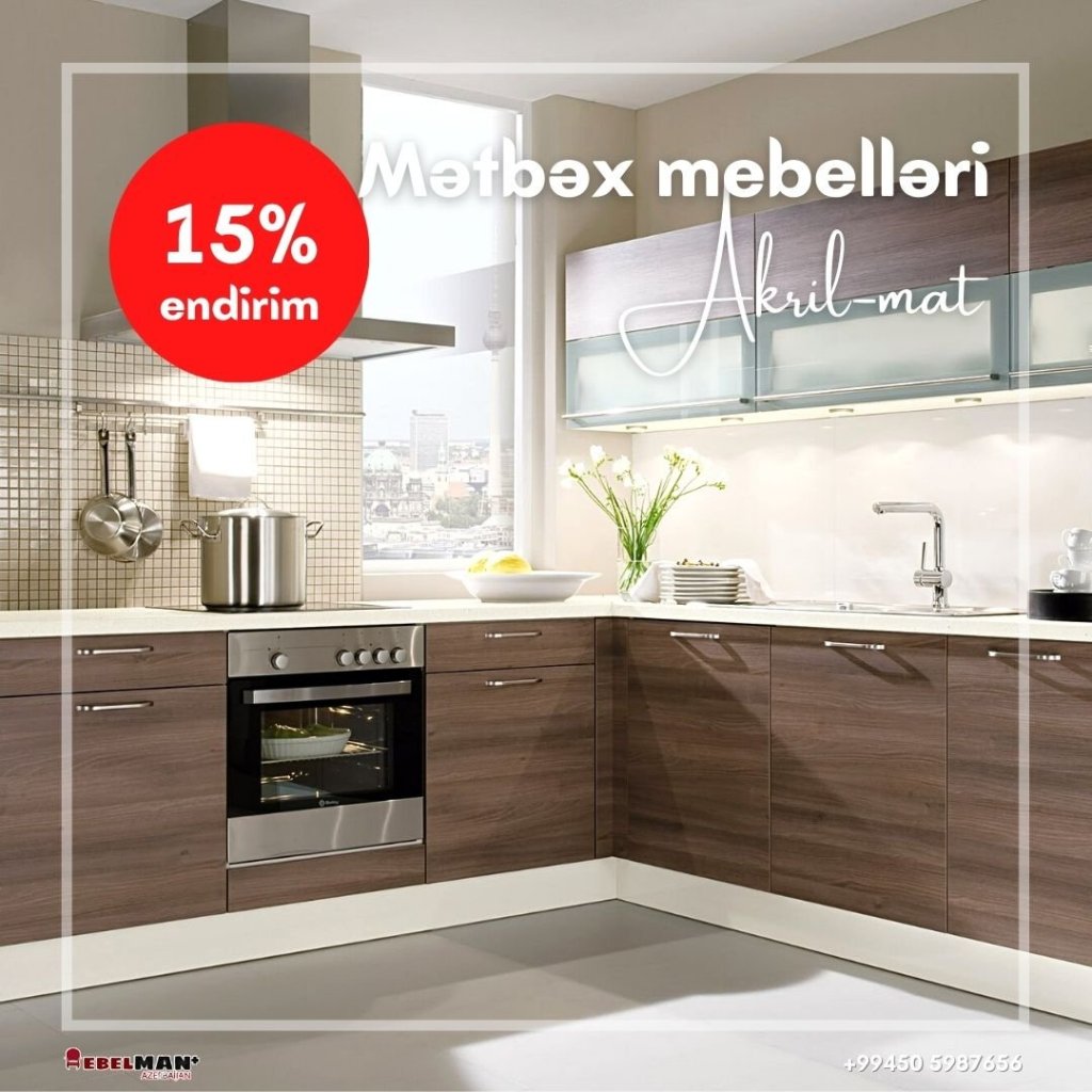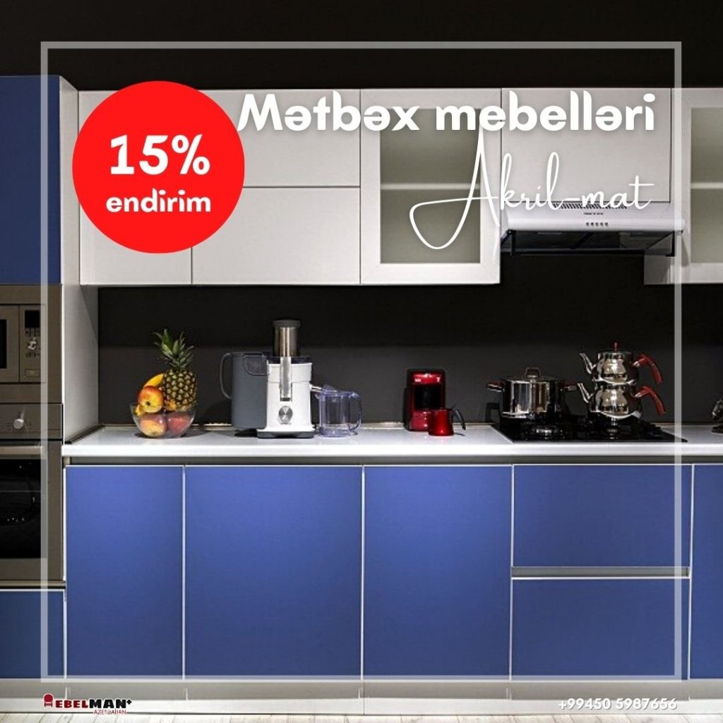 @mebelmanplus‘dan mətbəx mebellərinizə endirimli SUPER təklif!. İstənilən mətbəx mebeli dəstinin 15% xüsusi endirimlə sahib ola bilərsiniz. Sifarişlə istədiyiniz rəngdə və arzuladığınız dizaynda hazırlanır. İstehsalında möhkəm və dayanıqlı, tam original xammaldan istifadə olunan mətbəx mebelləri Rusiya isyehsalı laminat və Türkiyə istehsalı MDF materiallarından hazırlanır.