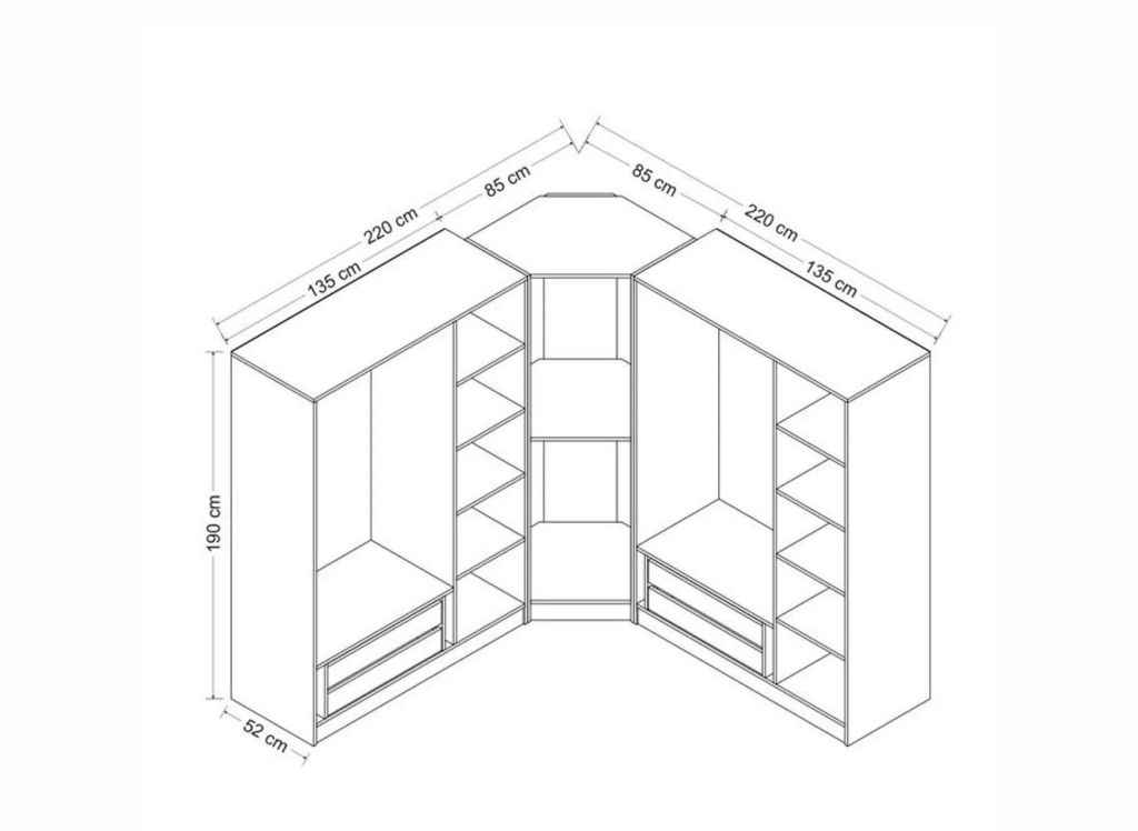 📐Ölüçləri: Kənar dolablar: 135190, künclük: 8585*190