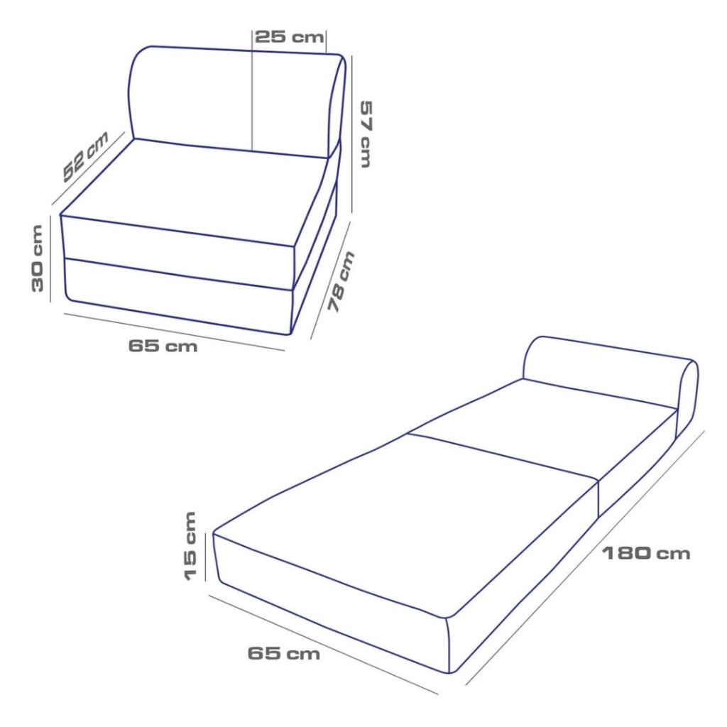 📐Ölçüləri: tək oturacaq: 65x77xh57 sm, çarpayı: 65x180xh15 sü: 14sm.