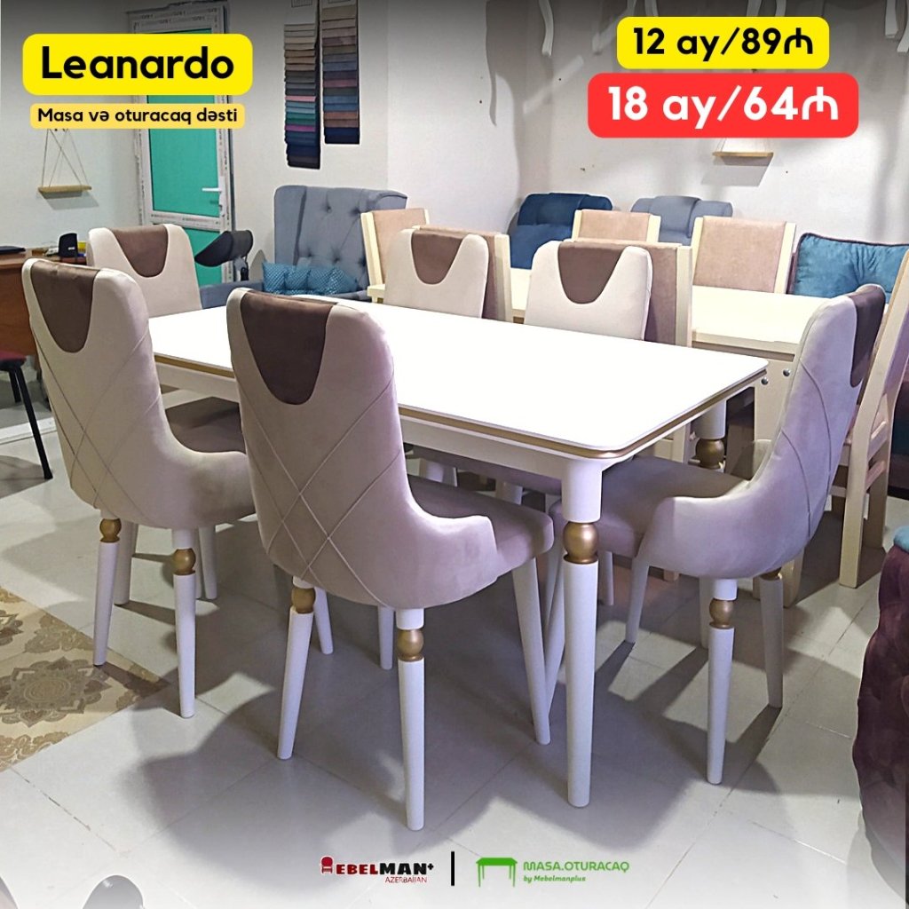 LEANARDO masa və oturacaq dəstini ilkin ödənişsiz 18 ayadək hissə-hissə ödənişlə əldə edə bilərsiniz.