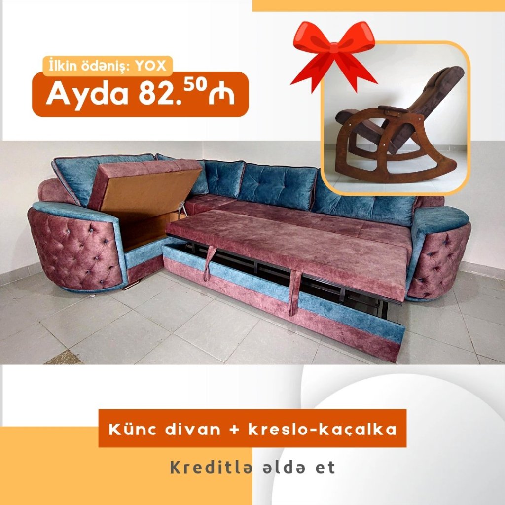 Yeni hədiyyəli kampaniya. Künc divan al, yellənən kreslo hədiyyə apar.