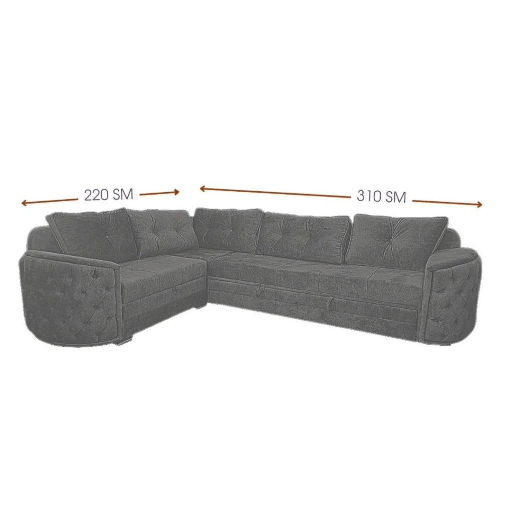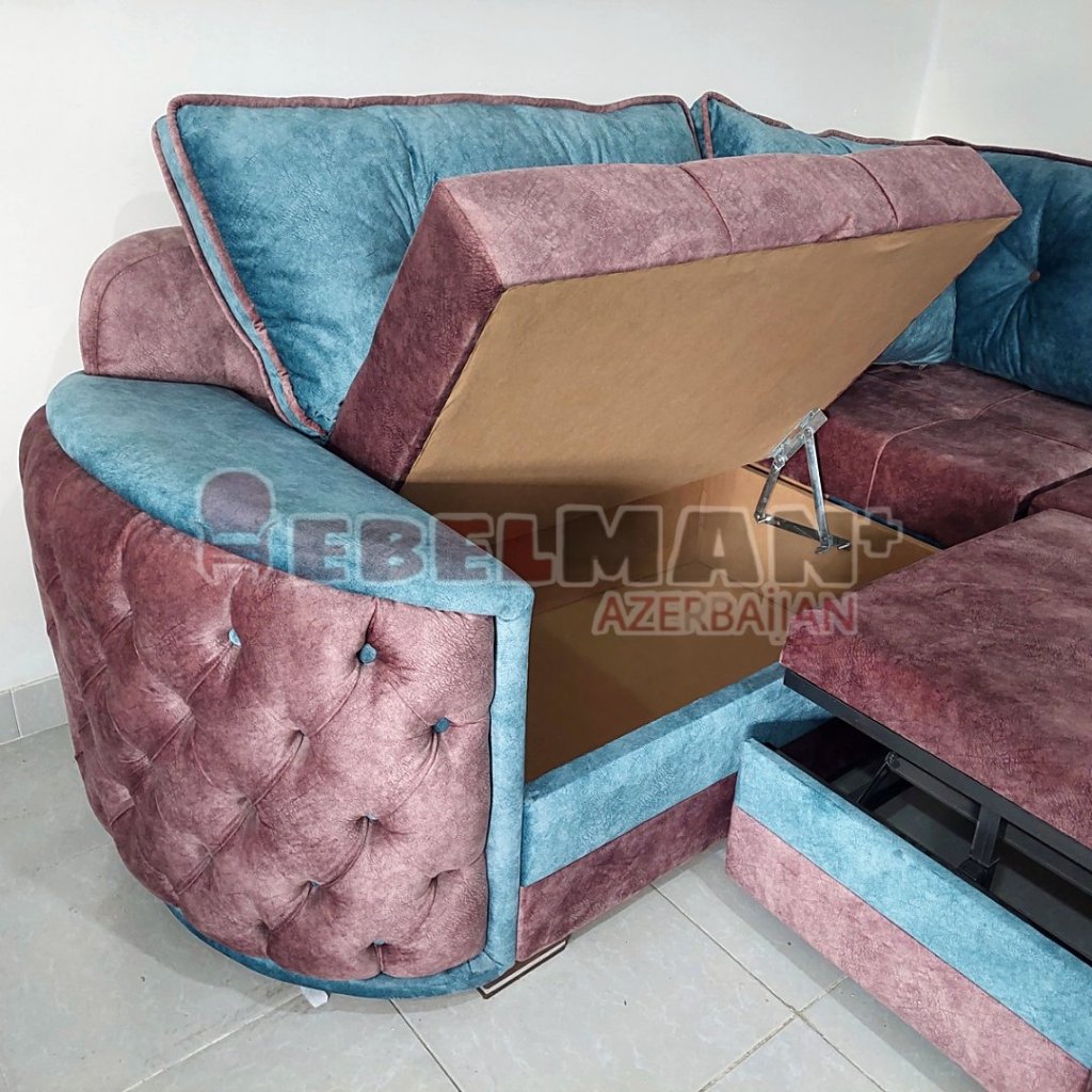 Füsünkar gözəllik xüsusi taxta dekorla daha üst pilləyə qalxır. İstehsalında möhkəm və qalın Rusiya istehsalı olan süngərdən istifadə olunub, eyni zamanda üzlük parçası Türkiyə istehsalıdır. Möhkəm karkasa malik olan bu künc divanı keyfiyyətinə Zəmanət verilən dayanıqlı mexanimlərlə təchiz olunub. Rahat açılıb bağlanır.
