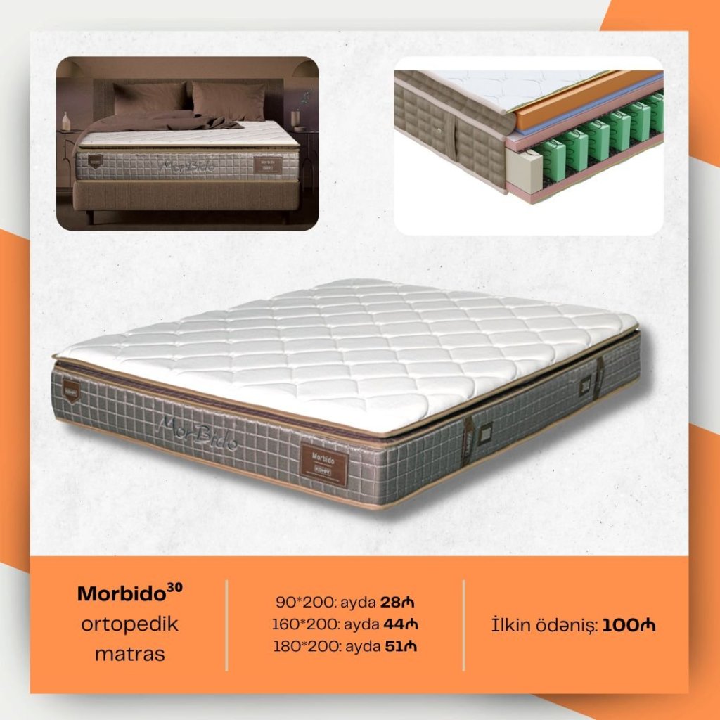 Ortopedik matraslar 3 aydan 18 ayadək kreditlə. 3 fərqli oçülərdə arzuladığınız matrası hissə-hissə ödənişlə əldə edə bilərsiniz.