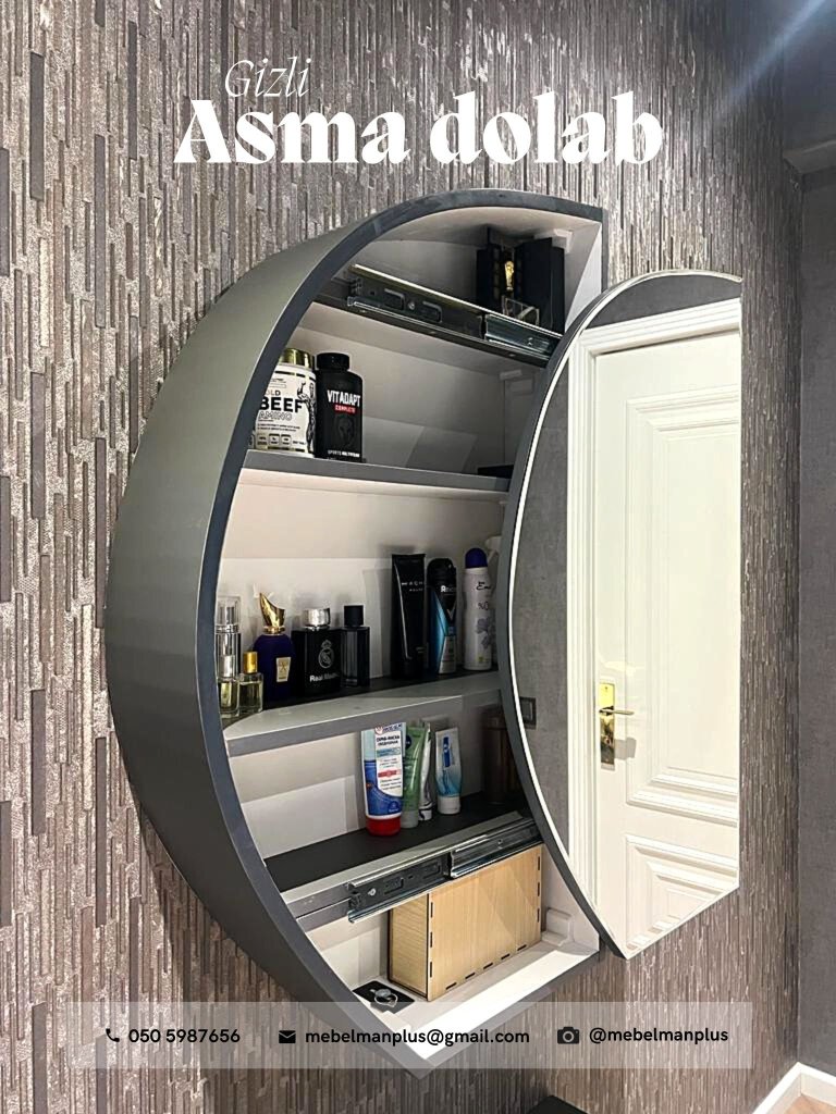 Hər evdə olmalı Yeni model gizli rəfli asma dolabı təqdim edirik. Mükəmməl dizaynı və ürək açan görünüşü ilə müştərilərin sevimlisi olan bu məhsulu istənilən rənglərdə sifariş edə bilərsiniz. İstehsalında Avropa standartlarına cavab verən keyfiyyətli və dayanıqlı MDF materialından istifadə olunur.