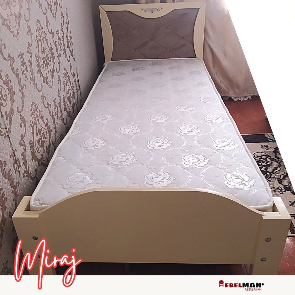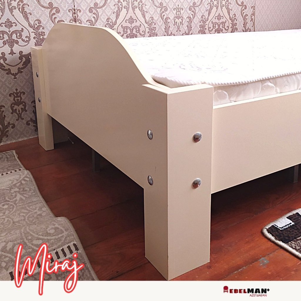 Miraj MDF tək adamlıq çarpayı, adından göründüyü kimi tamamilə MDF korpusa malikdir. Başlıq hissəsi yumuşaq materialla təchiz edilib, ayaq hissələri möhkəm və dayanıqlı bolt-qayka sistemi ilə bağlanıb. İstehsalında Türkiyə istehsalı MDF materialından, o cümlədən başlıq parça növü Türkiyə xammalıdır.