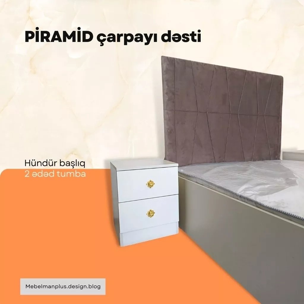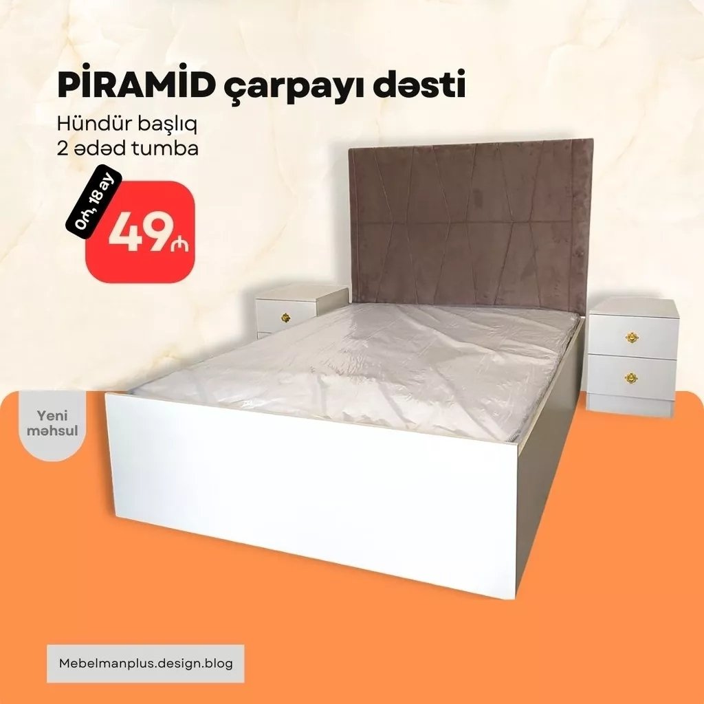 Yepyeni PİRAMİD çarpayı dəstini ilkin ödənişsiz kreditlə əldə edə bilərsiniz. Bu möhtəşəm başlıqlı iki tumba ilə olan yataq dəstinə ayda cəmi 49₼ ödəməklə sahib ola biləcəksiniz. İstehsalında Rusiya istehsalı laminat korpusla təchiz olunmuş, möhkəm və dayanıqlı karkası və matrası üstündə hədiyyə olaraq veririk.