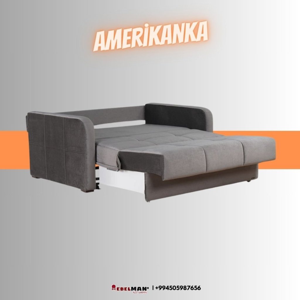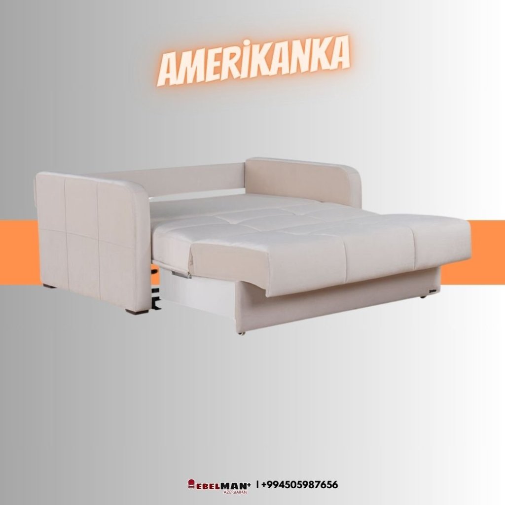 Çarpayı özəlliyi olan, amerikanka mexanizmli AMERİKANKA yumşaq mebeli ilə evinizin gözəlliyinə gözəllik qatın. Funksionallığı ilə səmərəli mebeldir elə deyilmi?! Açılıb taxt ölçüsündə olan və bazalı divan amerikanka stildə ADONİS MAERİKANKA məhsulunu 15% xüsusi endirimlə əldə bilərsiniz.