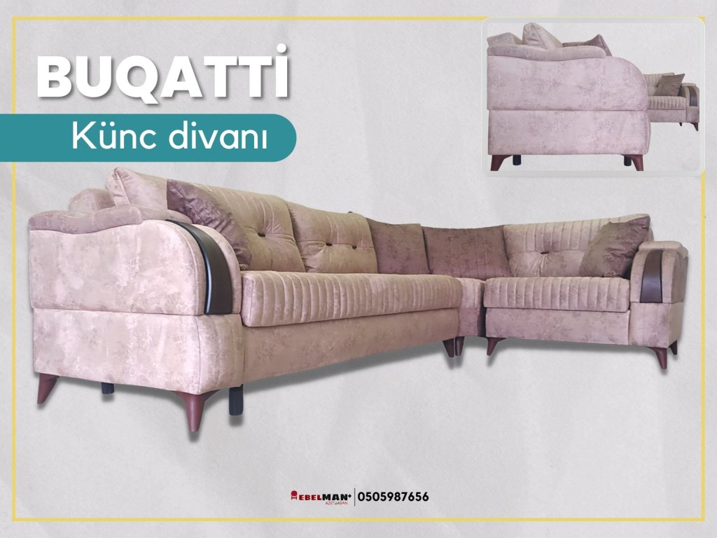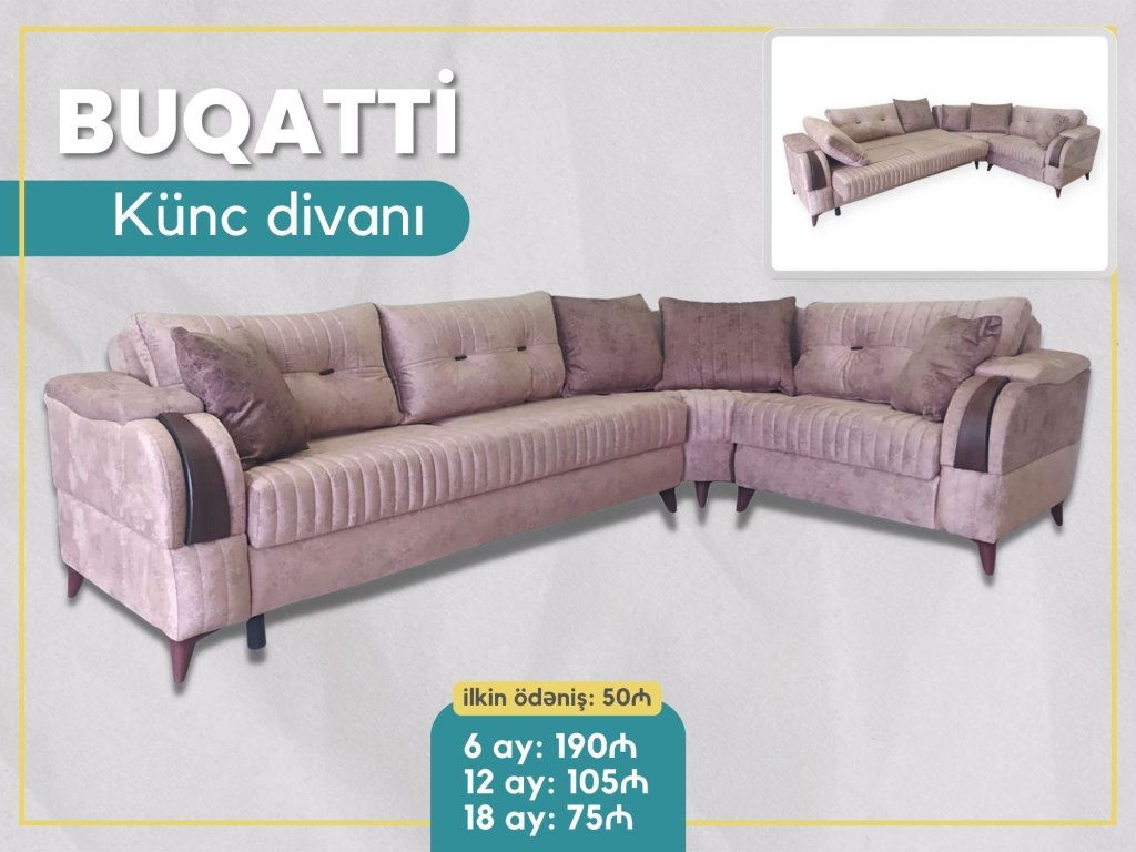 Yeni model künc divan BUQATTİ 18 ayadək kreditlə ayda 75₼. Cəmi 50₼ ilkin ödəniş ödəməklə bu ecazkar divana sahib ola bilərsiniz.