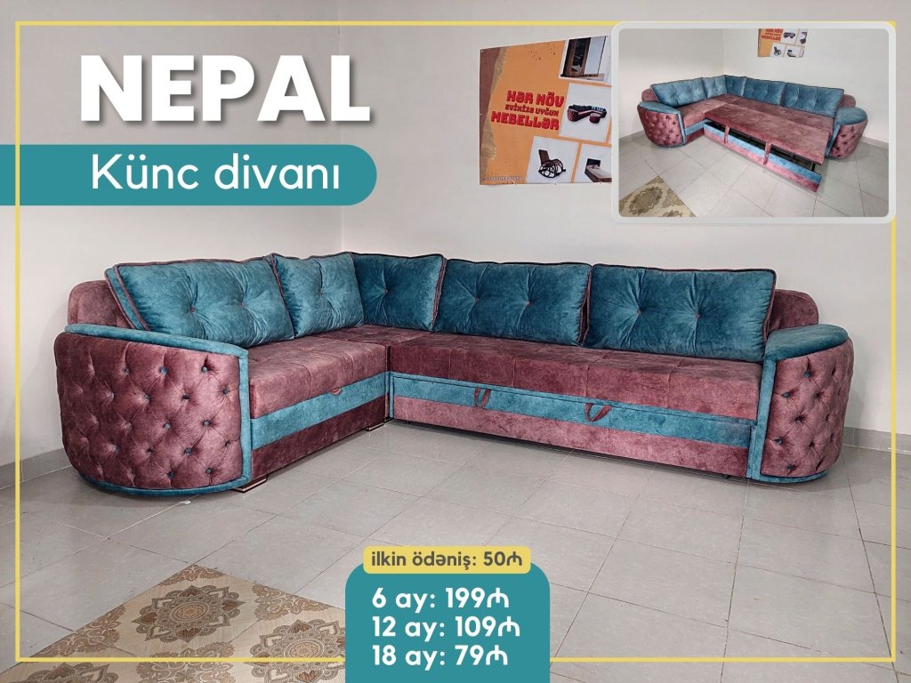 Yeni model künc divan NEPAL 18 ayadək kreditlə ayda 79₼. Cəmi 50₼ ilkin ödəniş ödəməklə bu ecazkar divana sahib ola bilərsiniz.