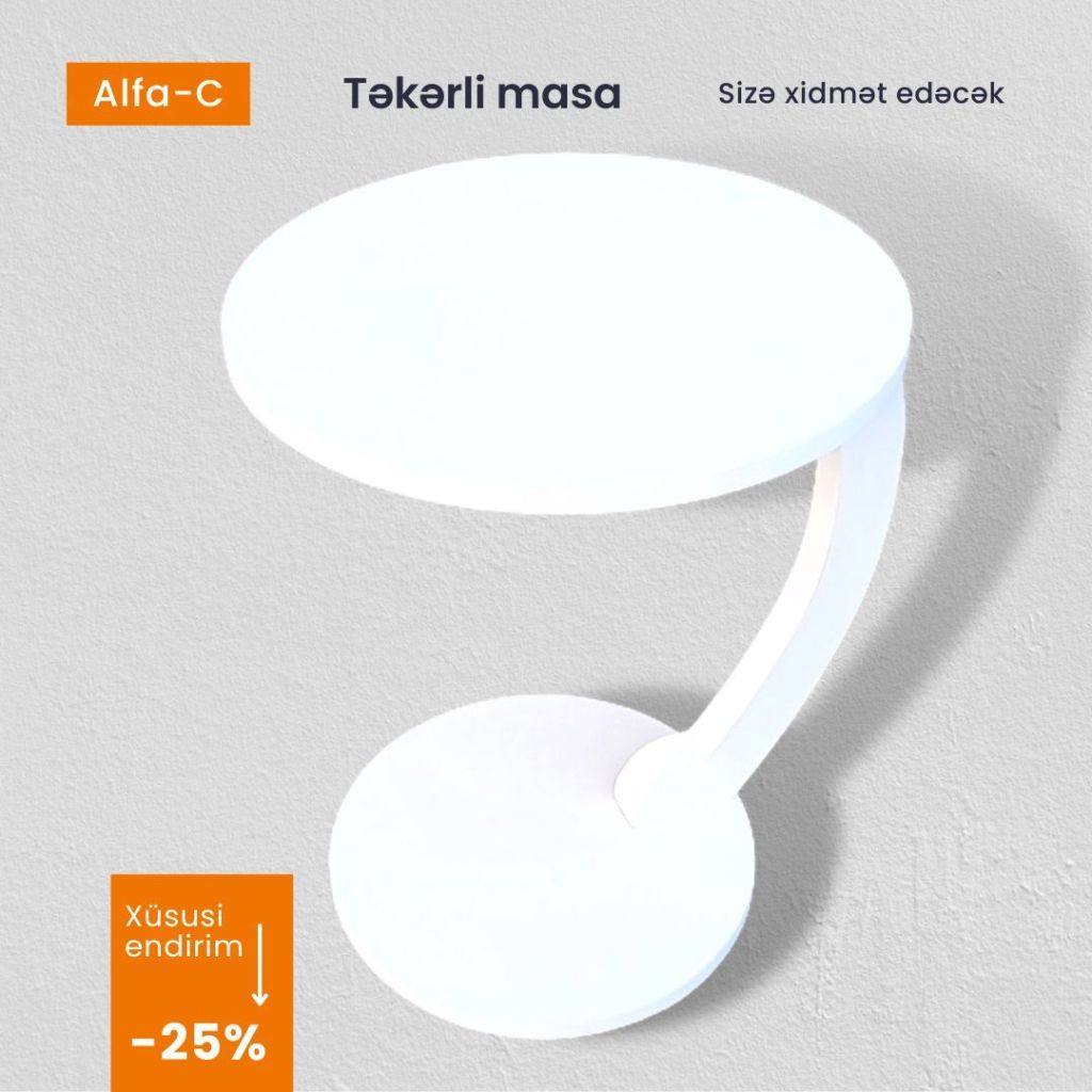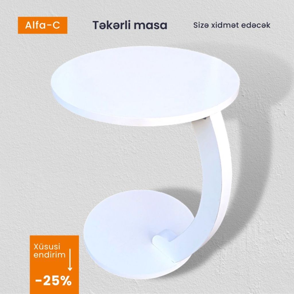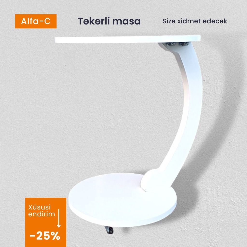 Təkərli quruluşu ilə oturacağın altında asanlıqla hərəkət edir və erqonomik rahatlıq təqdim edir. Xüsusi dizaynı titrəmə və əyilmək kimi problem yaratmır. İçəcəyinizi, yemək və kitabçanızı üzərinə rahatlıqla qoya bilərsiniz. Kompüterdən istifadədə rahatlıq təmin edir, planşet, telefon və s.məhsulları sizə yaxın olsun deyə yerləşdirə bilərsiniz. Qonaq otağı və yataq otağınıza bu məhsulla rəng qata bilərsiniz. Dəyişdirilə bilən təkərli quruluşu ilə rahatlıqla hərəkət etdirə blərsiniz. Məhsul Avropa E1 keyfiyyət standartlarında 18 mm qalınlığında DSP-dən hazırlanmışdır, ətraf mühitə və sağlamlığa zərərsizdir. Tərkibində kanserogen maddələr yoxdur. Təkər hissələri plastikdir.