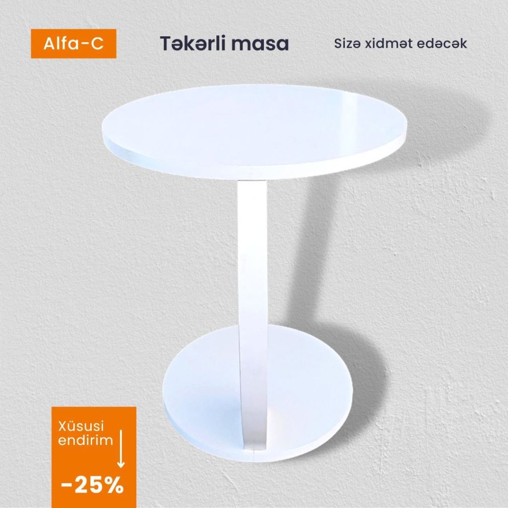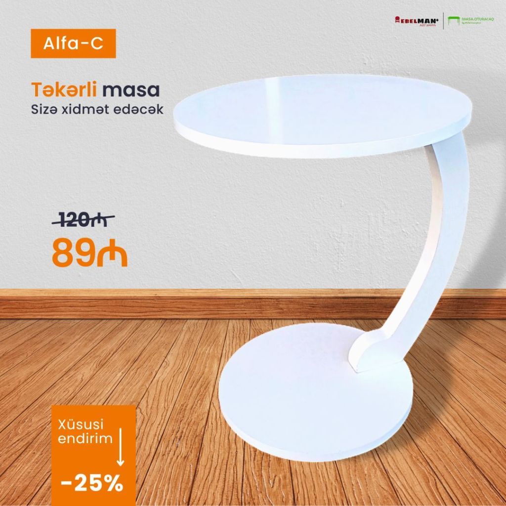 Türkiyə istehsalı yeni model təkərli jurnal masası ALFA-C modelini açıq ceviz rəngdə sizlərə təqdim edirik. Özüdə 25% xüsusi nəğd alış endirimi ilə cəmi 89₼.